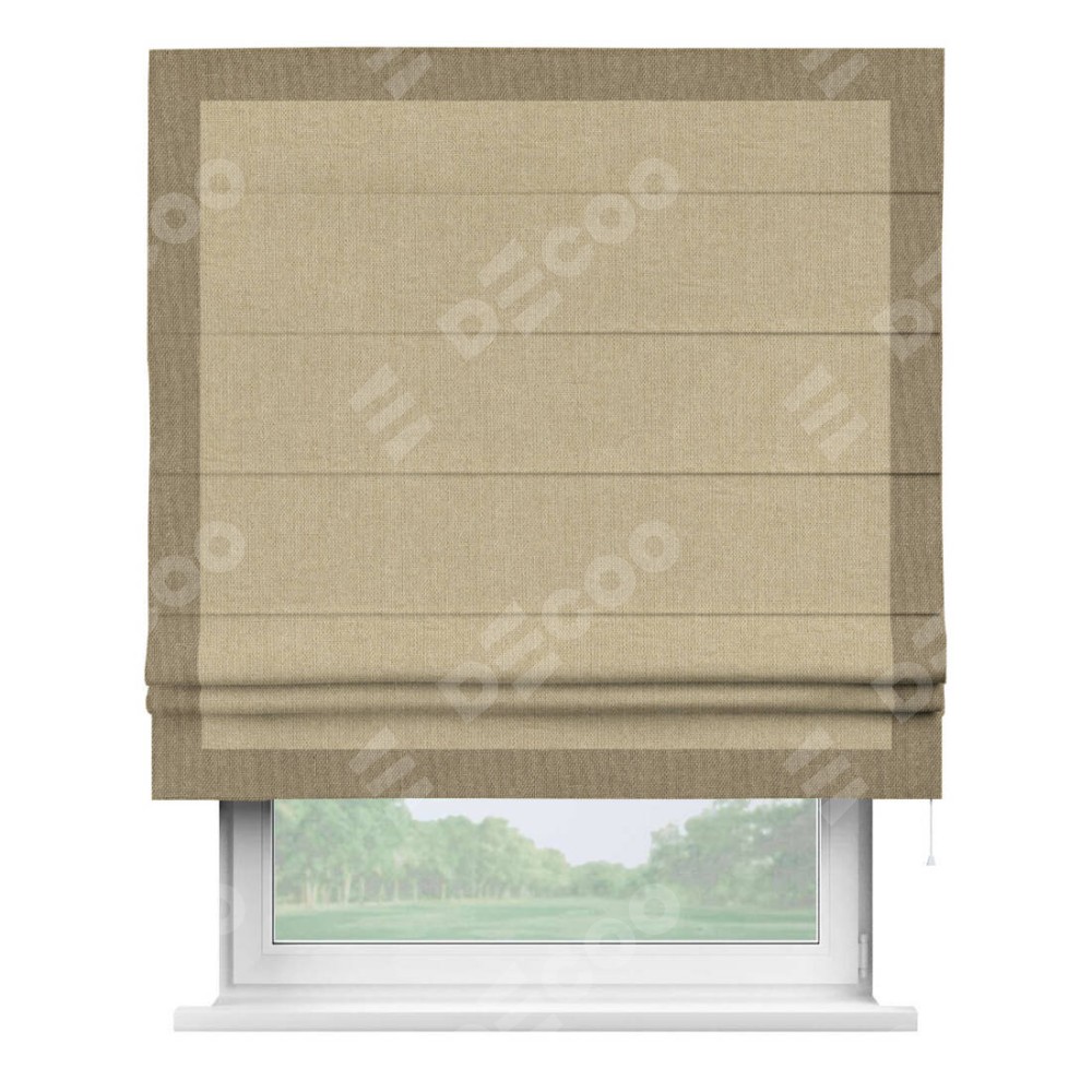 Римская штора «Кортин» для проема, лён димаут песочный с кантом Чесс