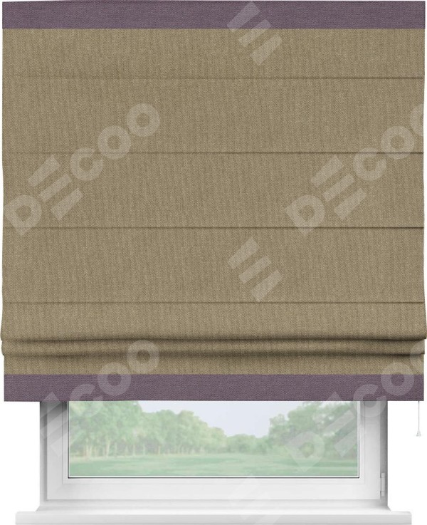 Римская штора «Кортин» для проема, лён димаут тёмно-бежевый с кантом Горизонт