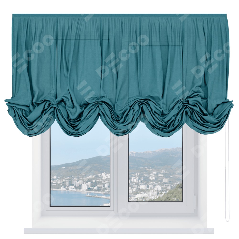 Австрийская штора «Кортин», лён бирюзовый