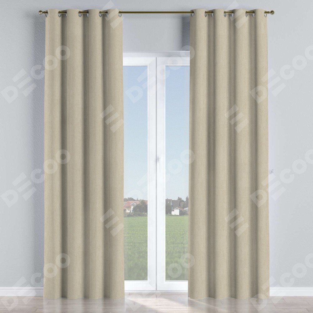 Комплект прямых штор, от производителя «Cortin», пошиты из ткани cotton блэкаут светло-бежевый, артикул ткани 71119. Данная модель пошита на люверсах, комплектуется на выбор круглым карнизом и подходит для монтажа на стену или потолок. Прямые шторы на люверсах шьются по стандарту с коэффициентом 1/2 (на 100 см. ширины проёма 200 см. ширины ткани), отличительным преимуществом данной модели является простой способ монтажа. Достаточно повесить ее на трубу и штора готова!
