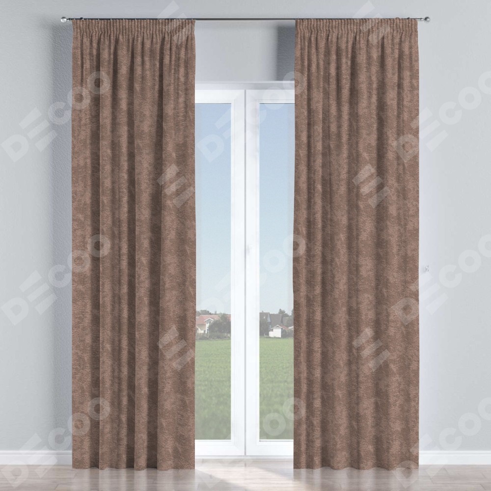 Комплект прямых штор, от производителя «Cortin», пошиты из ткани софт мрамор капучино, артикул ткани 93577. С изнаночной стороны в верхней части штор пристрачивается шторная лента с декоративными складками «Карандаш». Для создания элегантных складок прямые шторы шьются по стандарту с коэффициентом 1:2 (на 100 см. ширины проёма 200 см. ширины ткани).