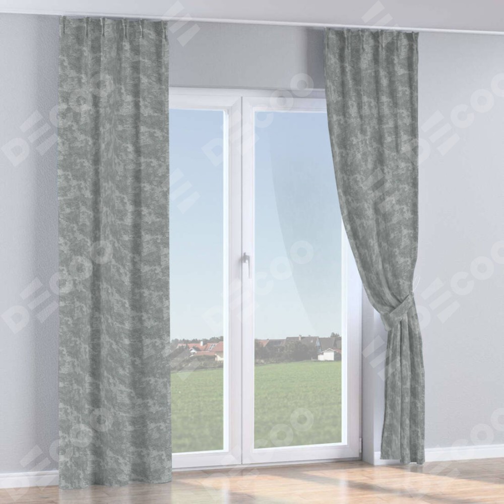 Комплект прямых штор, от производителя «Cortin», пошиты из ткани софт мрамор серый, артикул ткани 93583. С изнаночной стороны в верхней части штор пристрачивается шторная лента с декоративными складками «Кустик». Для создания элегантных складок прямые шторы шьются по стандарту с коэффициентом 1:2 (на 100 см. ширины проёма 200 см. ширины ткани).