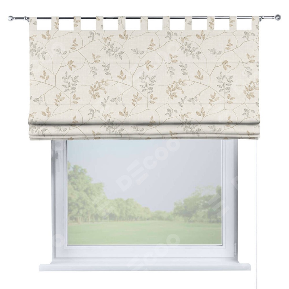 Римская штора производителя «Cortin», используется для проёма, пошита из ткани блэкаут с нанесением сублимационной печати «Флора бежевый». Данная модель пошита на петлях, комплектуется на выбор круглым карнизом и подходит для монтажа на стену. Римская штора на петлях имеет простую систему регулировки высоты, отличительным преимуществом данной модели является простой способ монтажа. Достаточно повесить ее на трубу и штора готова!