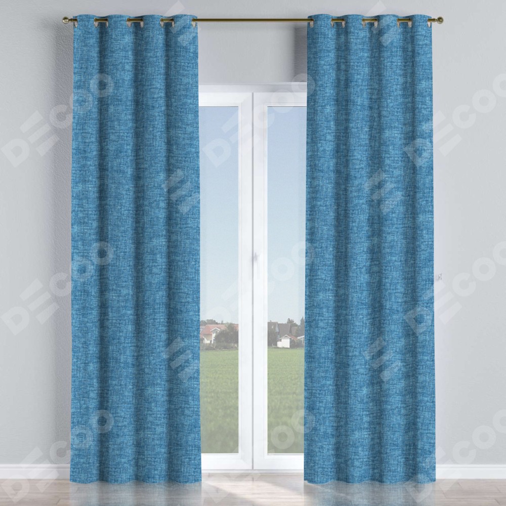 Комплект прямых штор, от производителя «Cortin», пошиты из ткани рогожка димаут джинс, артикул ткани 91026. Данная модель пошита на люверсах, комплектуется на выбор круглым карнизом и подходит для монтажа на стену или потолок. Прямые шторы на люверсах шьются по стандарту с коэффициентом 1/2 (на 100 см. ширины проёма 200 см. ширины ткани), отличительным преимуществом данной модели является простой способ монтажа. Достаточно повесить ее на трубу и штора готова!