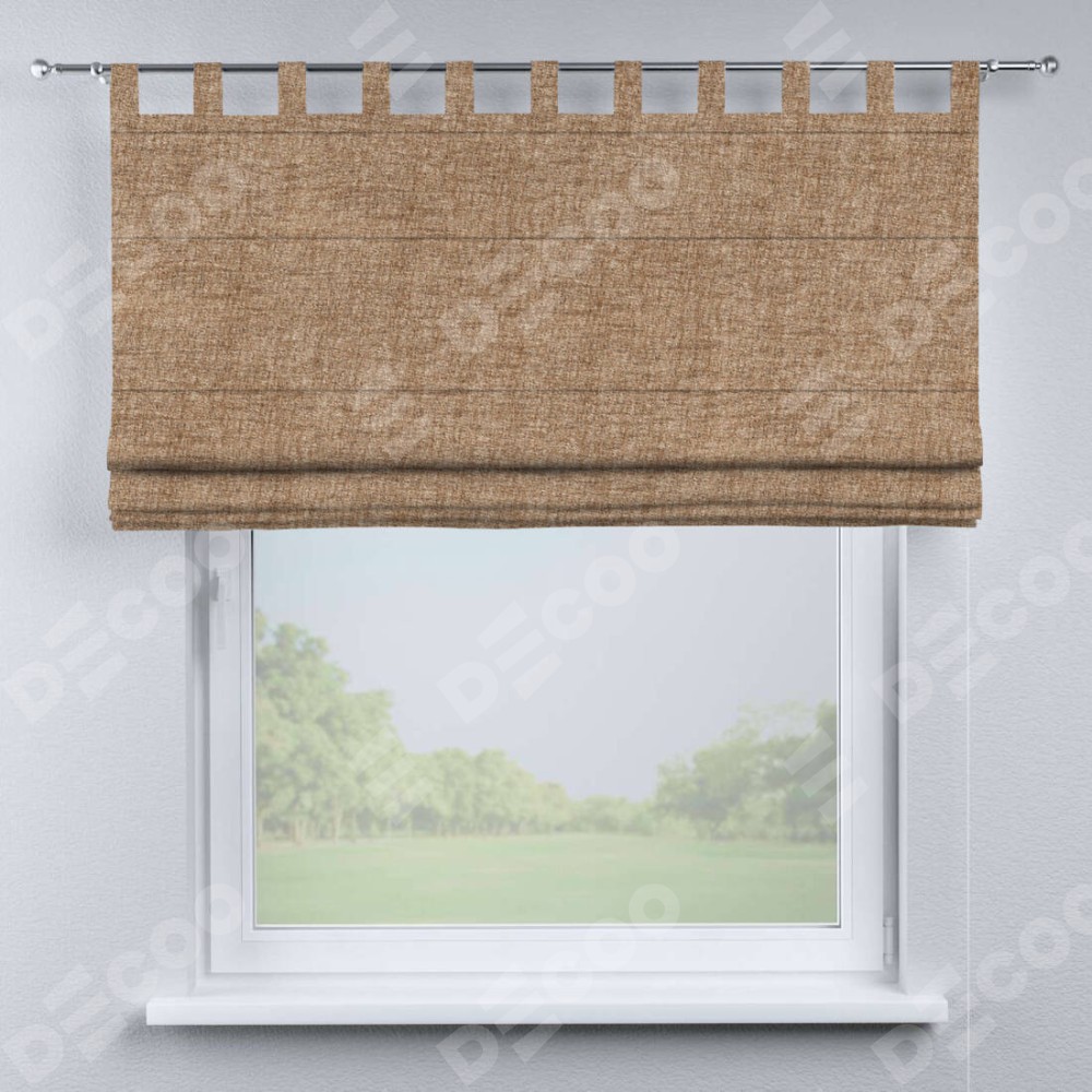 Римская штора производителя «Cortin», используется для проёма, пошита из ткани рогожка димаут светло-коричневый, артикул ткани 91017. Данная модель пошита на петлях, комплектуется на выбор круглым карнизом и подходит для монтажа на стену. Римская штора на петлях имеет простую систему регулировки высоты, отличительным преимуществом данной модели является простой способ монтажа. Достаточно повесить ее на трубу и штора готова!