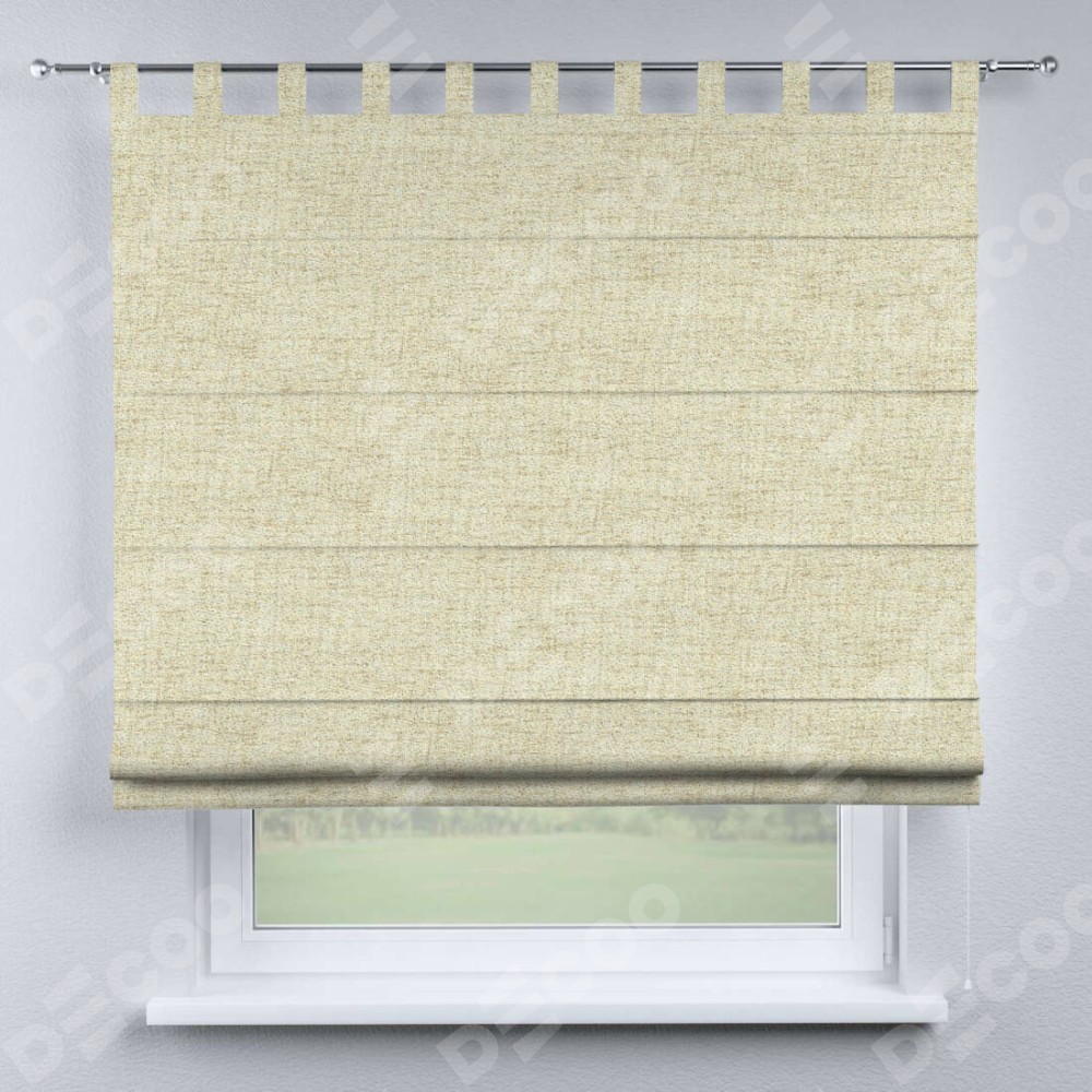 Римская штора производителя «Cortin», используется для проёма, пошита из ткани рогожка димаут золотой песок, артикул ткани 91015. Данная модель пошита на петлях, комплектуется на выбор круглым карнизом и подходит для монтажа на стену. Римская штора на петлях имеет простую систему регулировки высоты, отличительным преимуществом данной модели является простой способ монтажа. Достаточно повесить ее на трубу и штора готова!