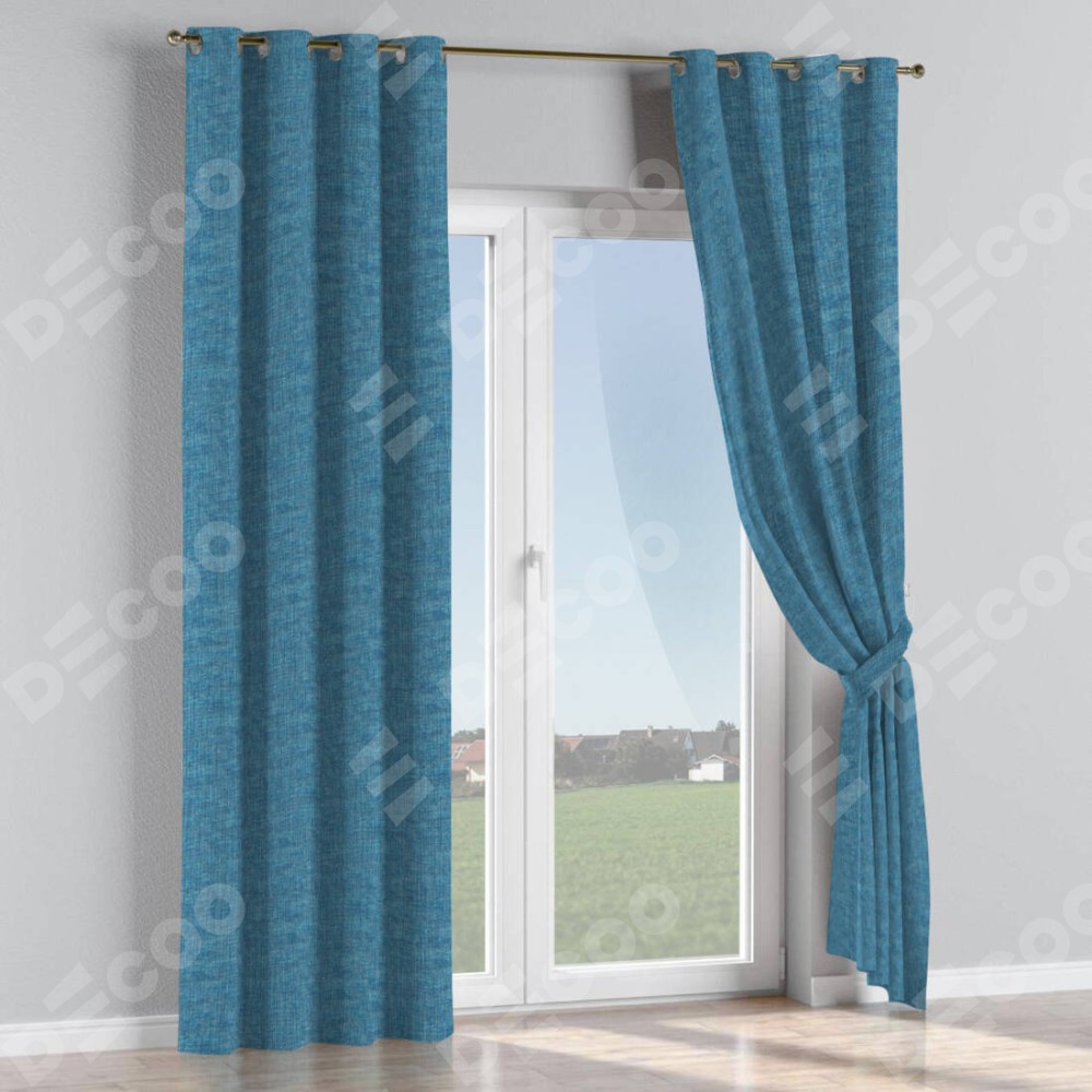 Комплект прямых штор, от производителя «Cortin», пошиты из ткани рогожка димаут лазурно-синий, артикул ткани 91024. Данная модель пошита на люверсах, комплектуется на выбор круглым карнизом и подходит для монтажа на стену или потолок. Прямые шторы на люверсах шьются по стандарту с коэффициентом 1/2 (на 100 см. ширины проёма 200 см. ширины ткани), отличительным преимуществом данной модели является простой способ монтажа. Достаточно повесить ее на трубу и штора готова!
