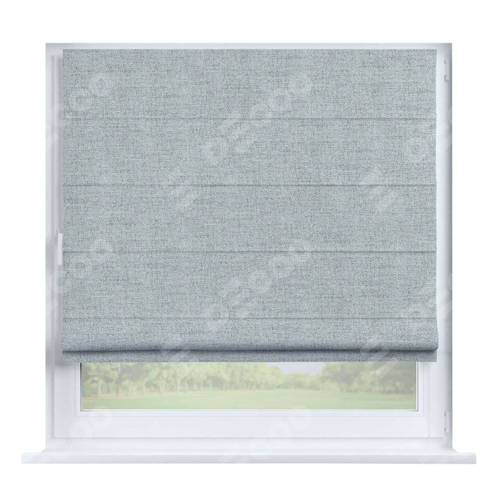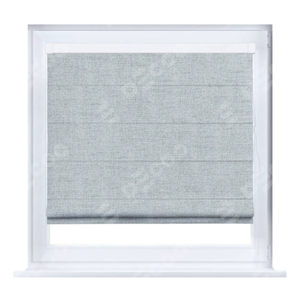 Римская штора производителя «Cortin», устанавливается на створку окна, пошита из ткани рогожка димаут серый, артикул 91027. Штора шьётся по индивидуальным размерам, для данного типа римской шторы возможная ширина от 35 до 150 см., высота до 250 см.