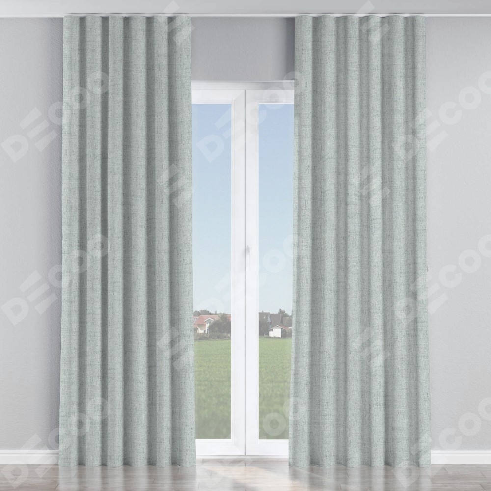 Комплект прямых штор, от производителя «Cortin», пошиты из ткани рогожка димаут серый, артикул ткани 91027. С изнаночной стороны в верхней части штор пристрачивается шторная лента с декоративными складками «Волна». Для создания элегантных складок прямые шторы шьются по стандарту с коэффициентом 1:2 (на 100 см. ширины проёма 200 см. ширины ткани).