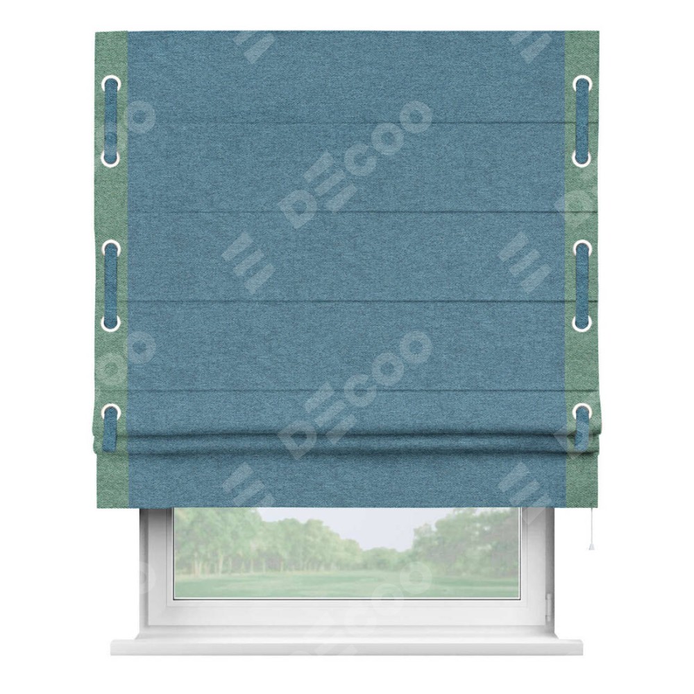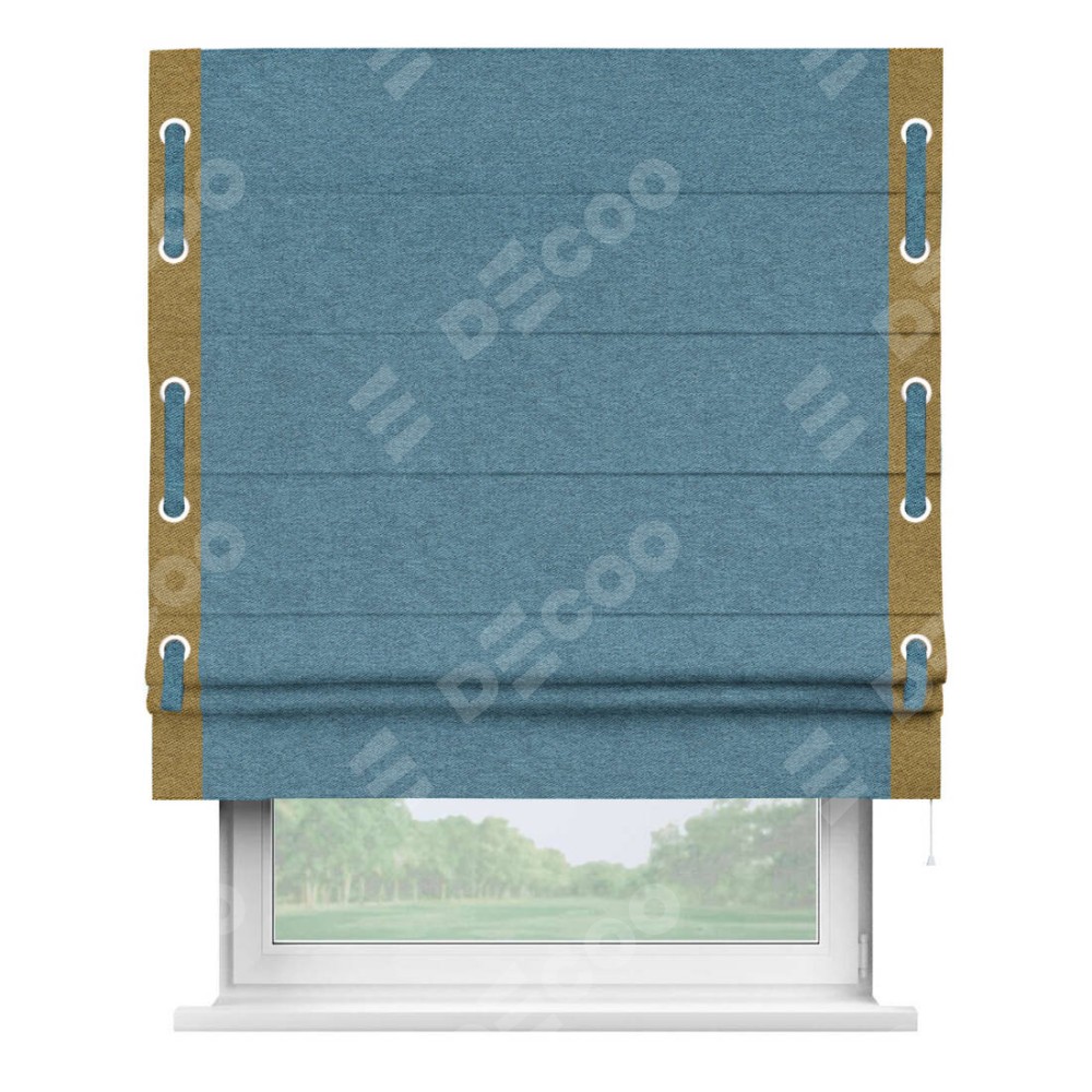 Римская штора «Кортин» с кантом Стрим Дуо (люверсы с пояском), для проема, ткань твид блэкаут, светло-синий