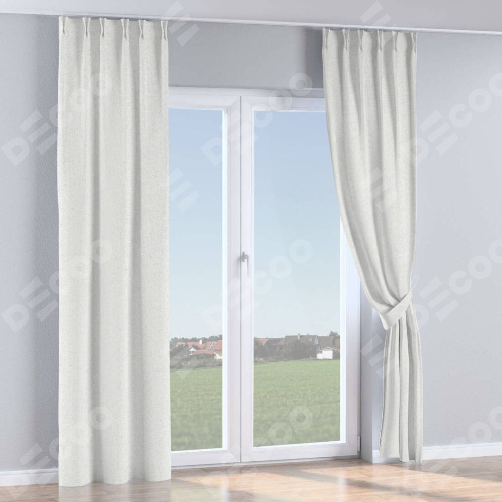 Комплект прямых штор, от производителя «Cortin», пошиты из ткани лён шампань, артикул ткани 91399. С изнаночной стороны в верхней части штор пристрачивается шторная лента с декоративными складками «Кустик». Для создания элегантных складок прямые шторы шьются по стандарту с коэффициентом 1:2 (на 100 см. ширины проёма 200 см. ширины ткани).