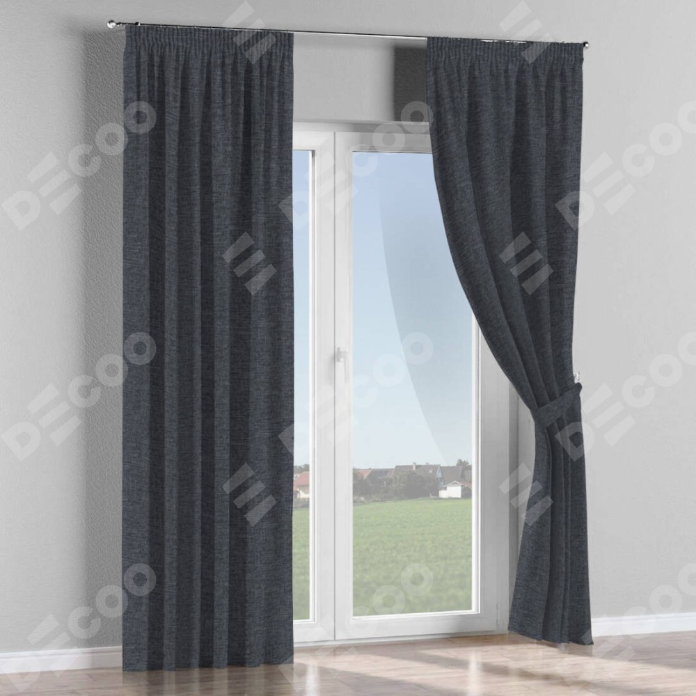 Комплект прямых штор, от производителя «Cortin», пошиты из ткани рогожка димаут графит, артикул ткани 90950. С изнаночной стороны в верхней части штор пристрачивается шторная лента с декоративными складками «Карандаш». Для создания элегантных складок прямые шторы шьются по стандарту с коэффициентом 1:2 (на 100 см. ширины проёма 200 см. ширины ткани).