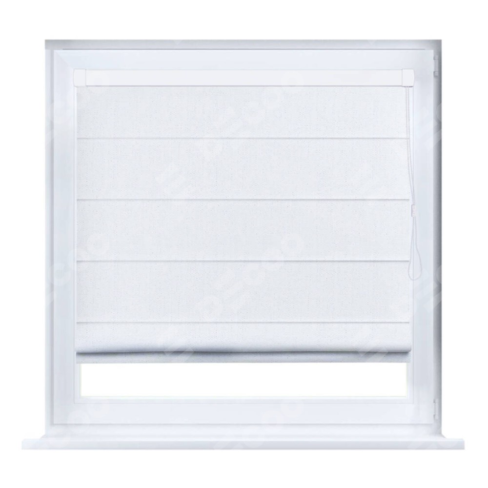 Римская штора производителя «Cortin», устанавливается на створку окна, пошита из ткани лён белоснежный, артикул 95632. Штора шьётся по индивидуальным размерам, для данного типа римской шторы возможная ширина от 35 до 150 см., высота до 250 см.