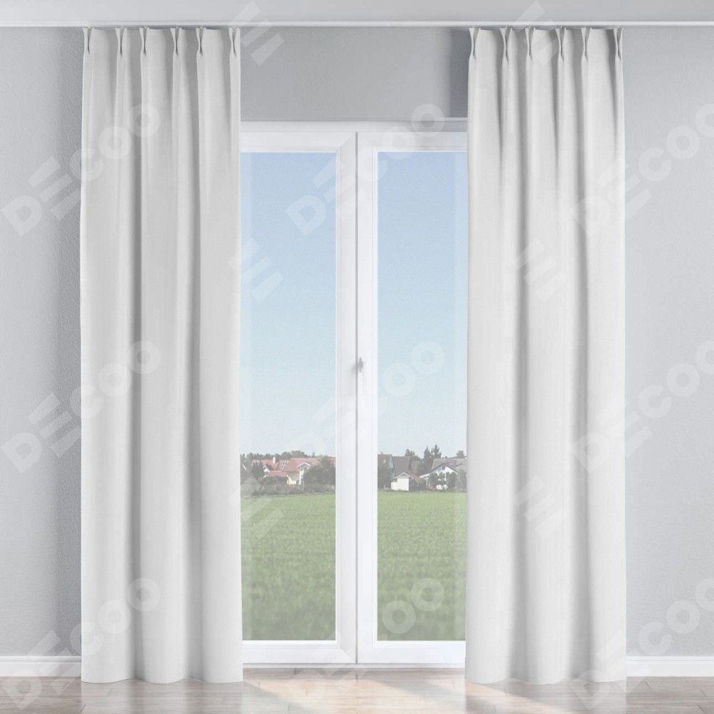 Комплект прямых штор, от производителя «Cortin», пошиты из ткани лён белоснежный, артикул ткани 95632. С изнаночной стороны в верхней части штор пристрачивается шторная лента с декоративными складками «Кустик». Для создания элегантных складок прямые шторы шьются по стандарту с коэффициентом 1:2 (на 100 см. ширины проёма 200 см. ширины ткани).