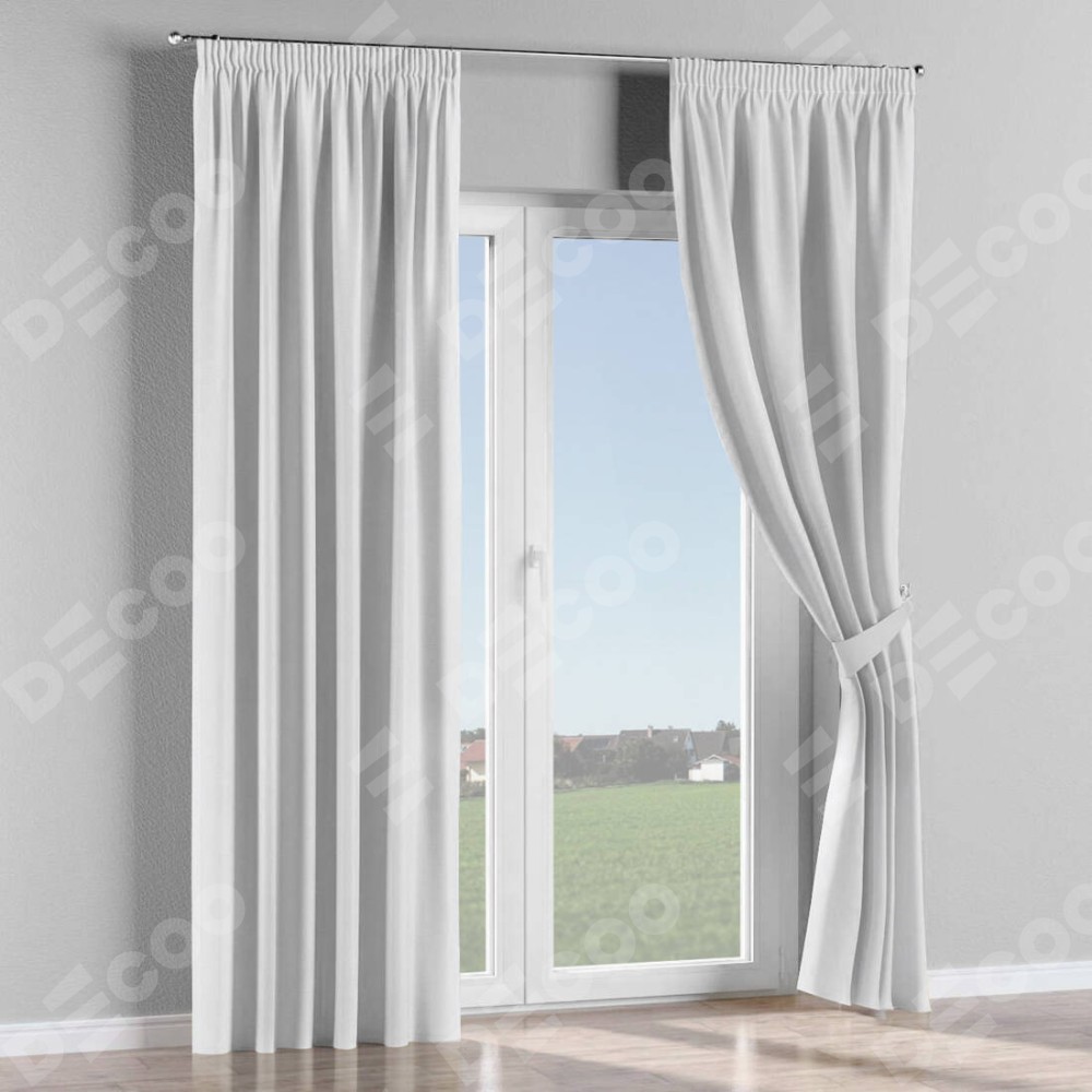 Комплект прямых штор, от производителя «Cortin», пошиты из ткани вельвет белоснежный, артикул ткани 92698. С изнаночной стороны в верхней части штор пристрачивается шторная лента с декоративными складками «Карандаш». Для создания элегантных складок прямые шторы шьются по стандарту с коэффициентом 1:2 (на 100 см. ширины проёма 200 см. ширины ткани).
