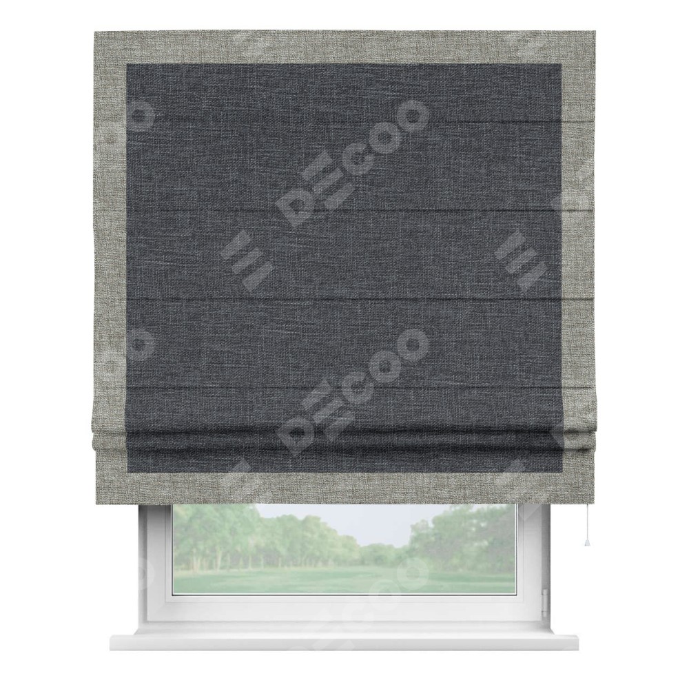 Римская штора «Кортин» для проёма, рогожка димаут графит, с кантом Чесс