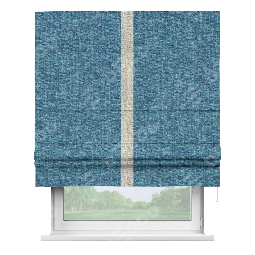 Римская штора «Кортин» для проёма, рогожка димаут лазурно-синий, с кантом Хайвэй