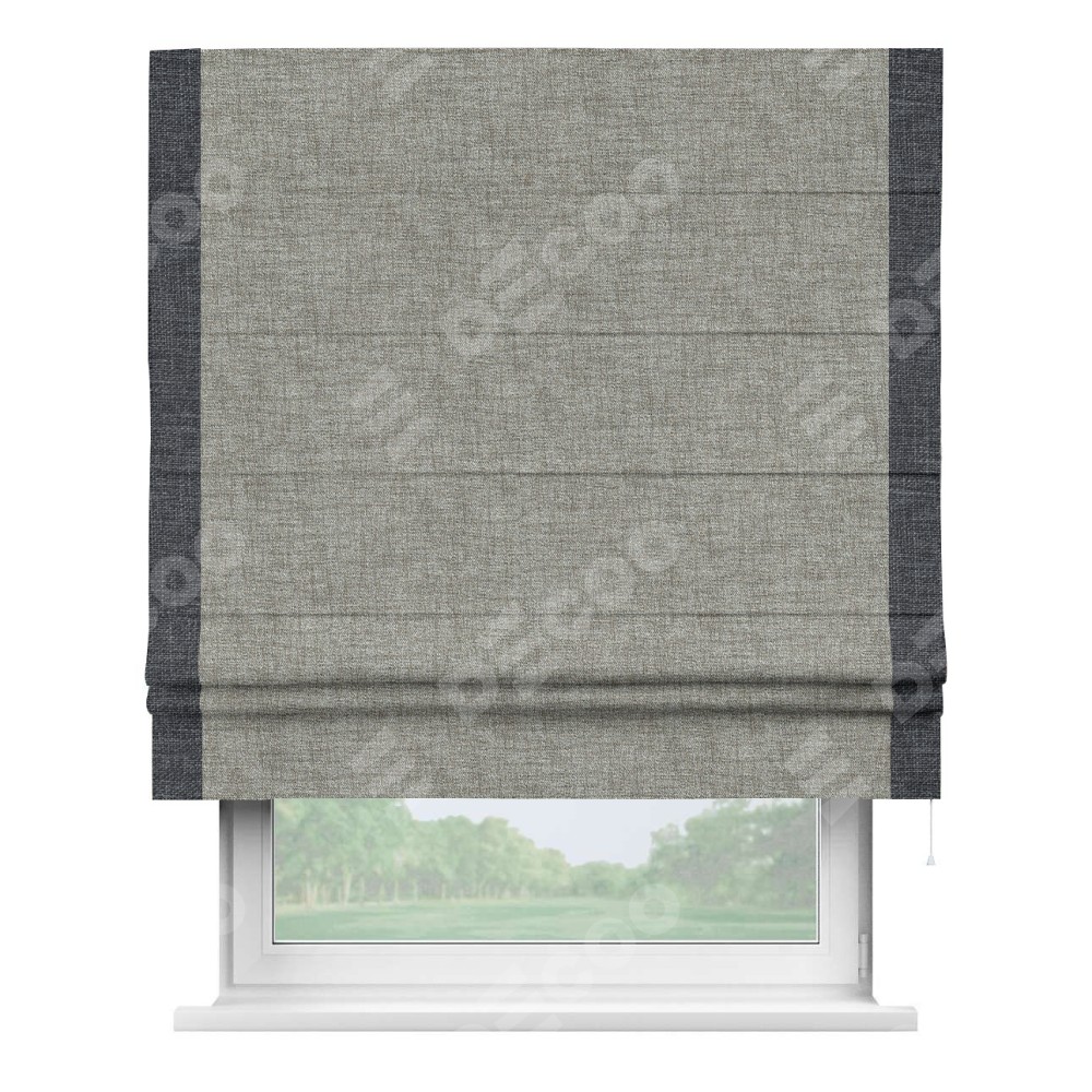 Римская штора «Кортин» для проёма, рогожка димаут серый дуб, с кантом Стрим Дуо