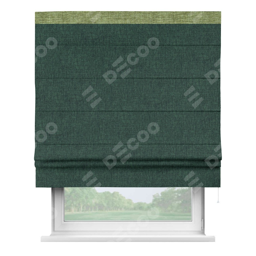 Римская штора «Кортин» для проёма, рогожка димаут тёмно-зелёный, с кантом Кинг