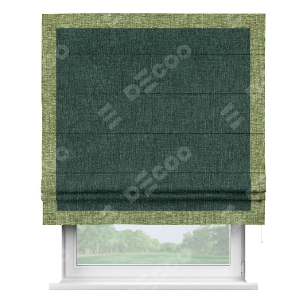 Римская штора «Кортин» для проёма, рогожка димаут тёмно-зелёный, с кантом Чесс