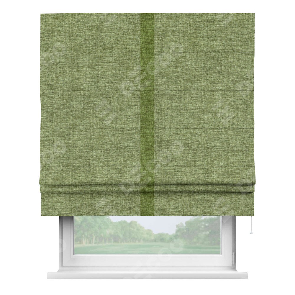 Римская штора «Кортин» для проёма, рогожка димаут травяной, с кантом Хайвэй