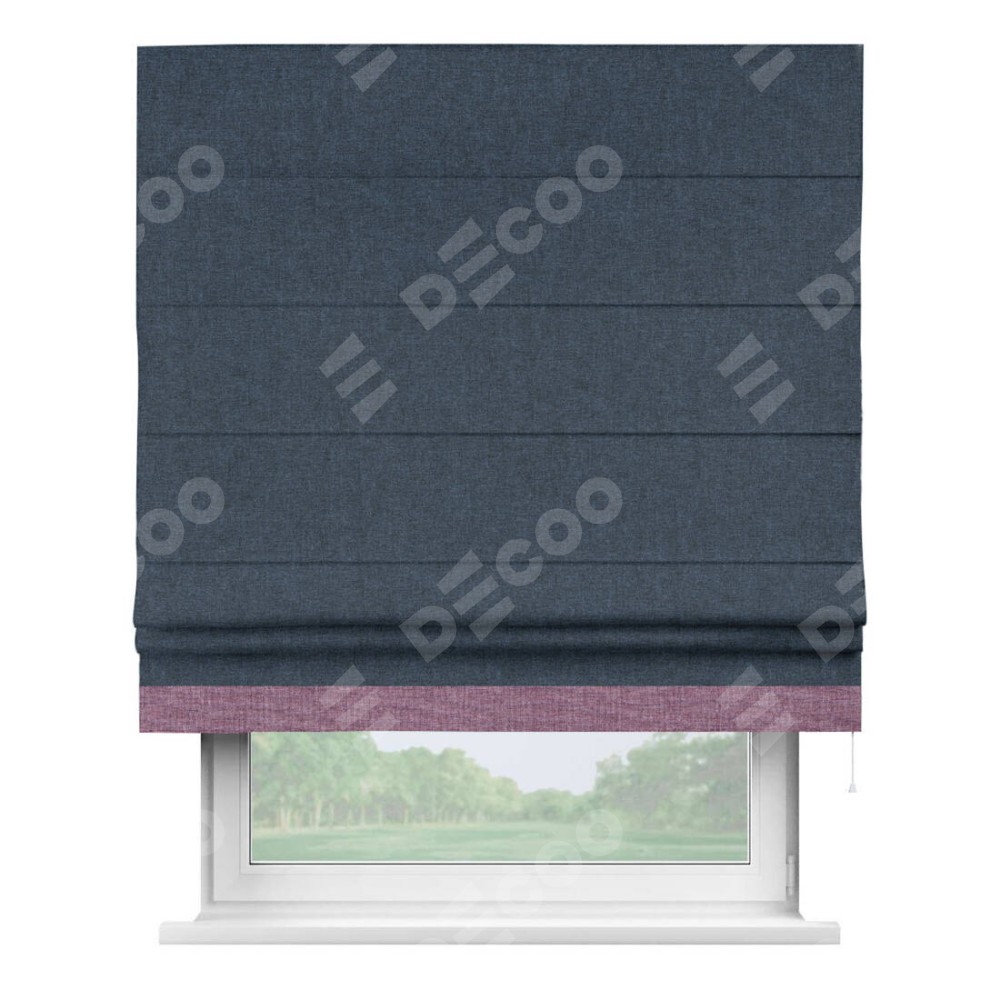 Римская штора «Кортин» для проёма, лён кашемир синий, с кантом Джестер
