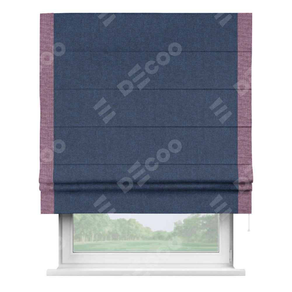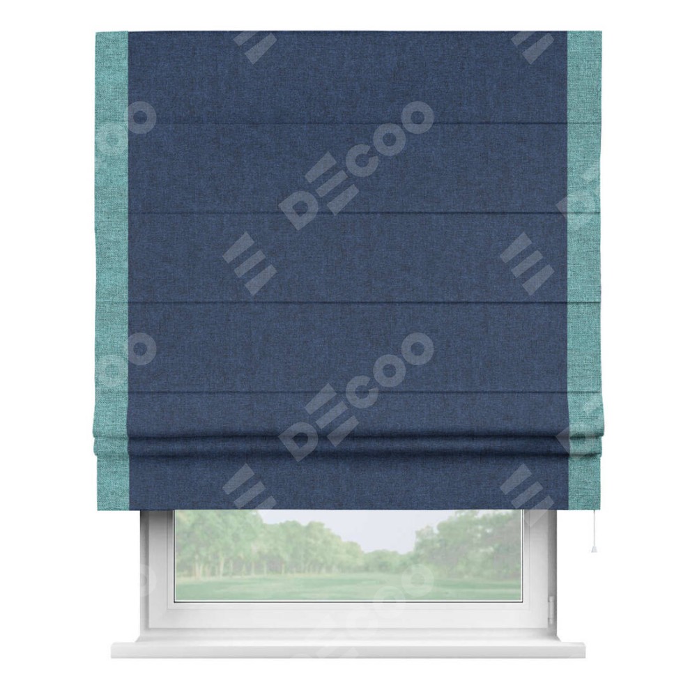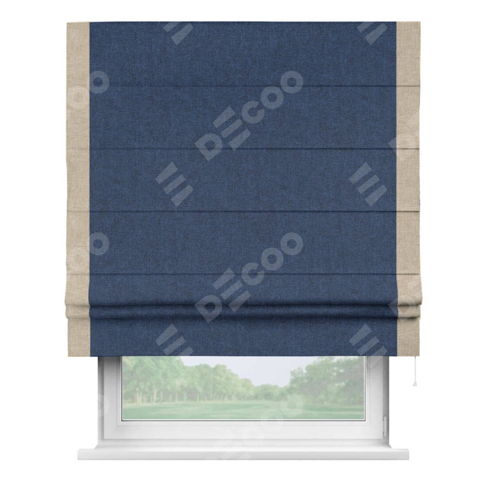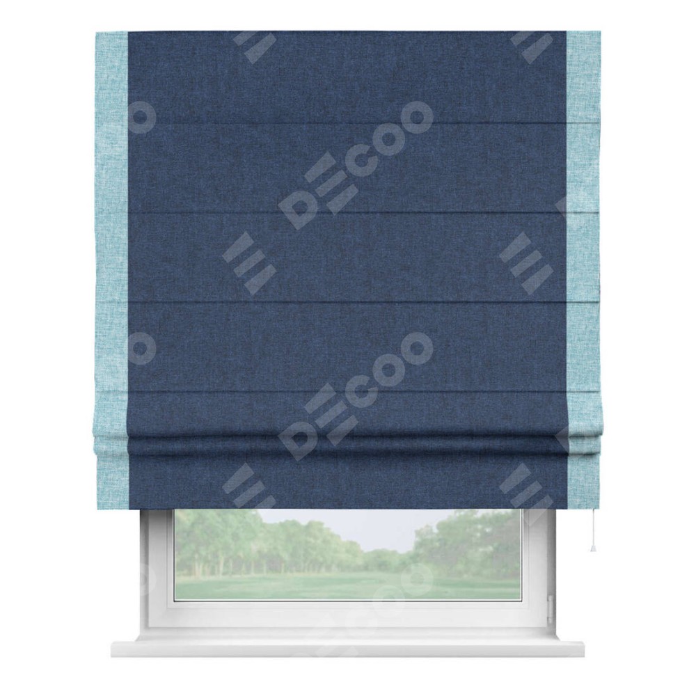 Римская штора «Кортин» для проёма, лён кашемир тёмно-синий, с кантом Стрим Дуо