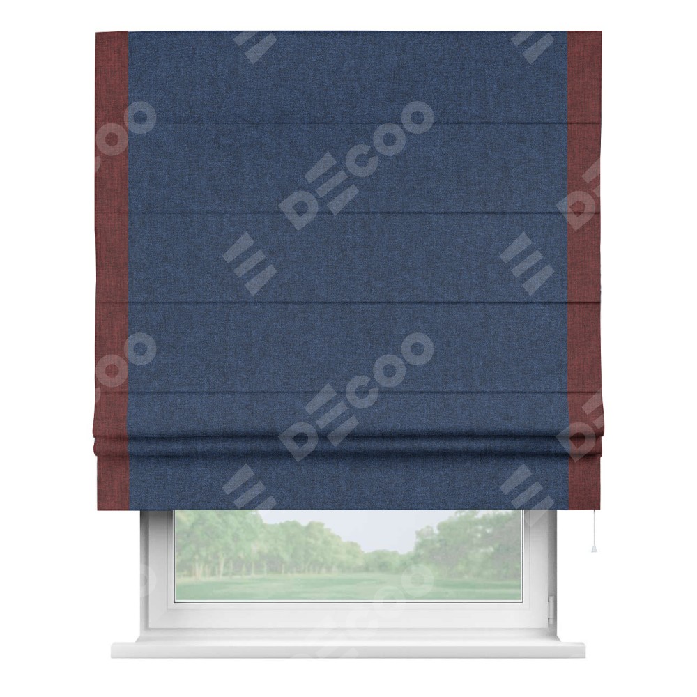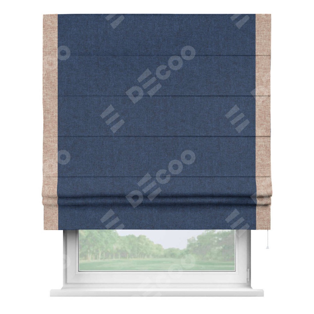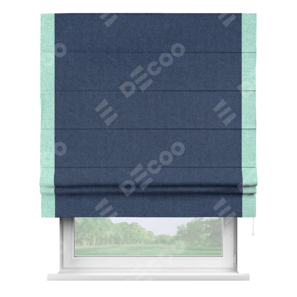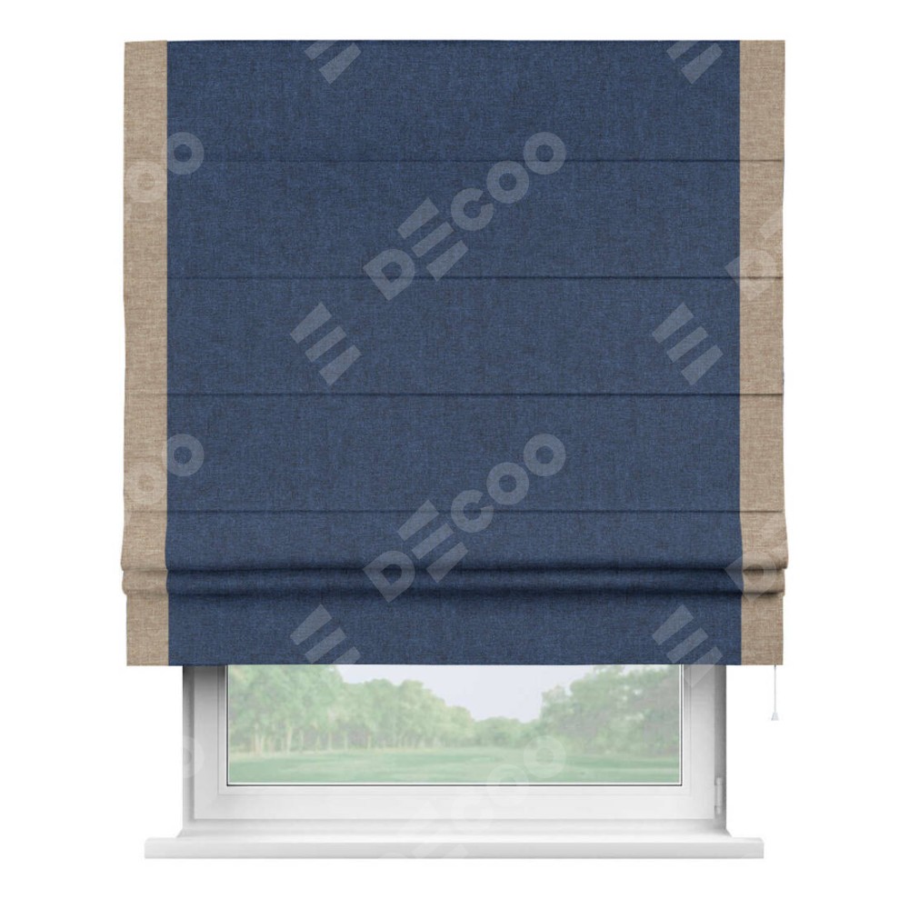 Римская штора «Кортин» для проёма, лён кашемир тёмно-синий, с кантом Стрим Дуо