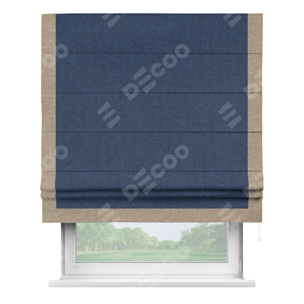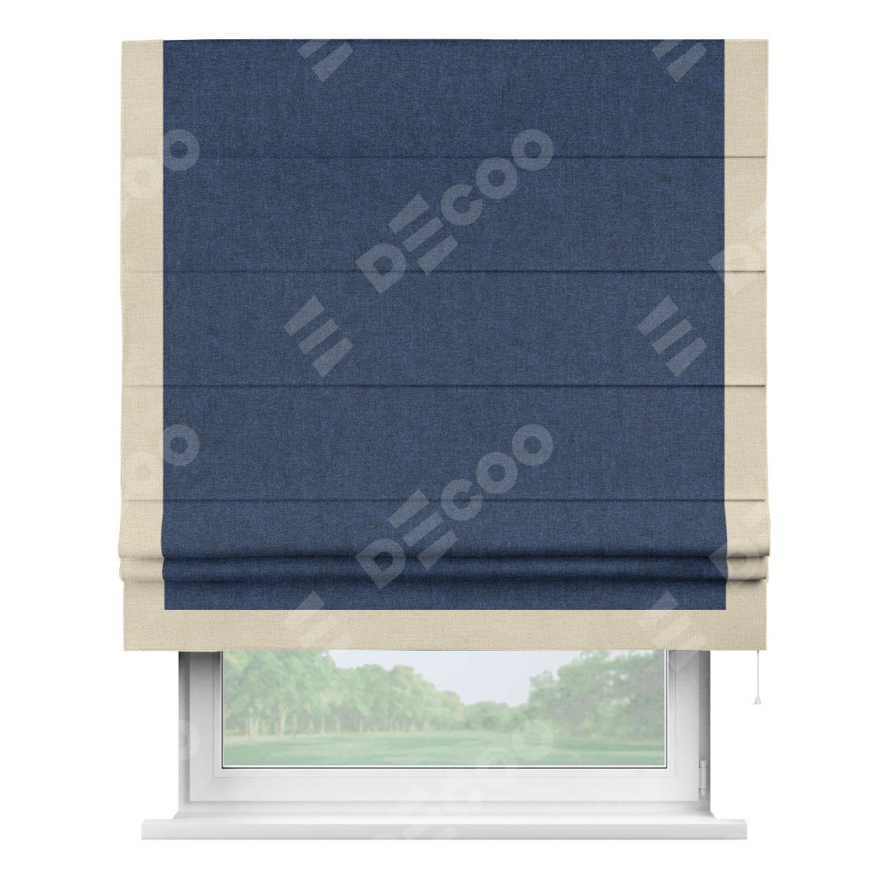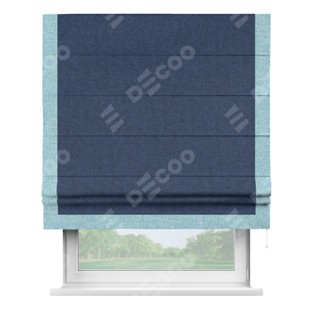 Римская штора «Кортин» для проёма, лён кашемир тёмно-синий, с кантом Виктория