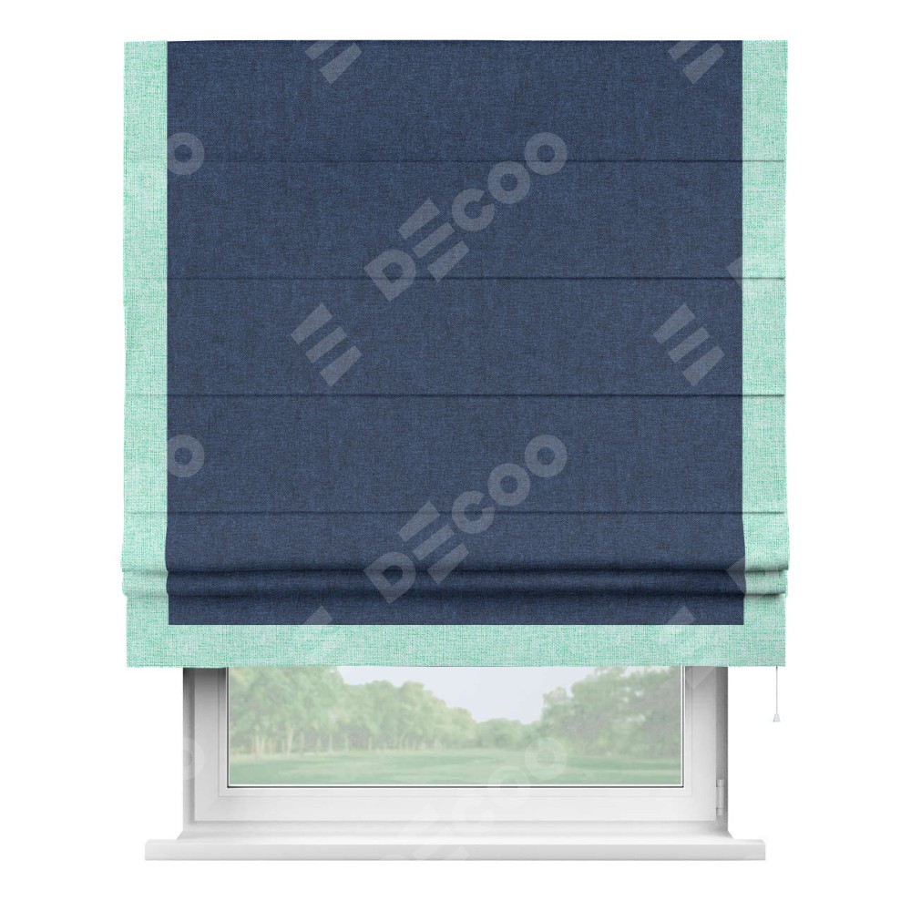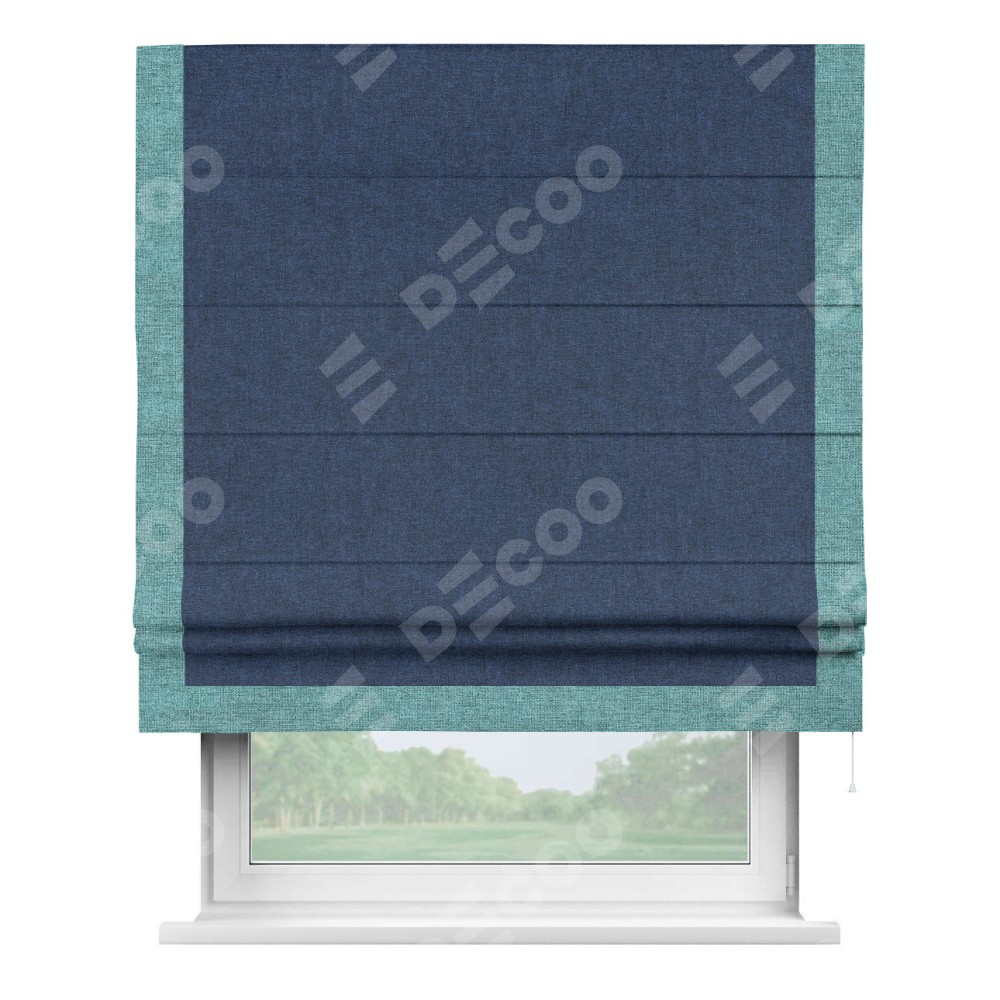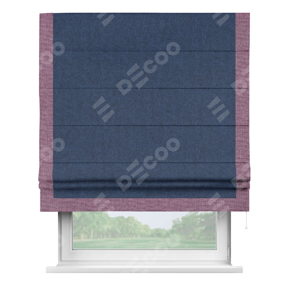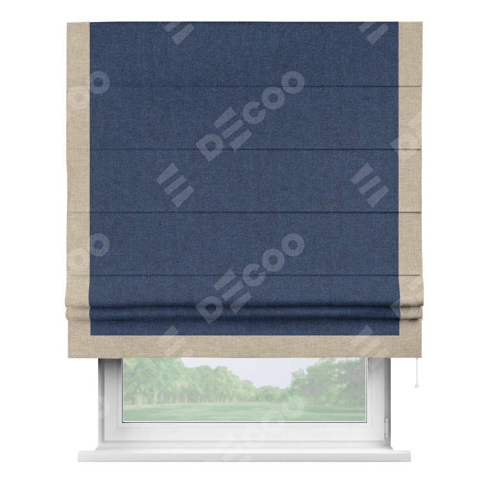 Римская штора «Кортин» для проёма, лён кашемир тёмно-синий, с кантом Виктория