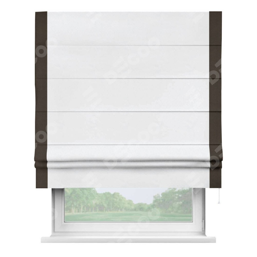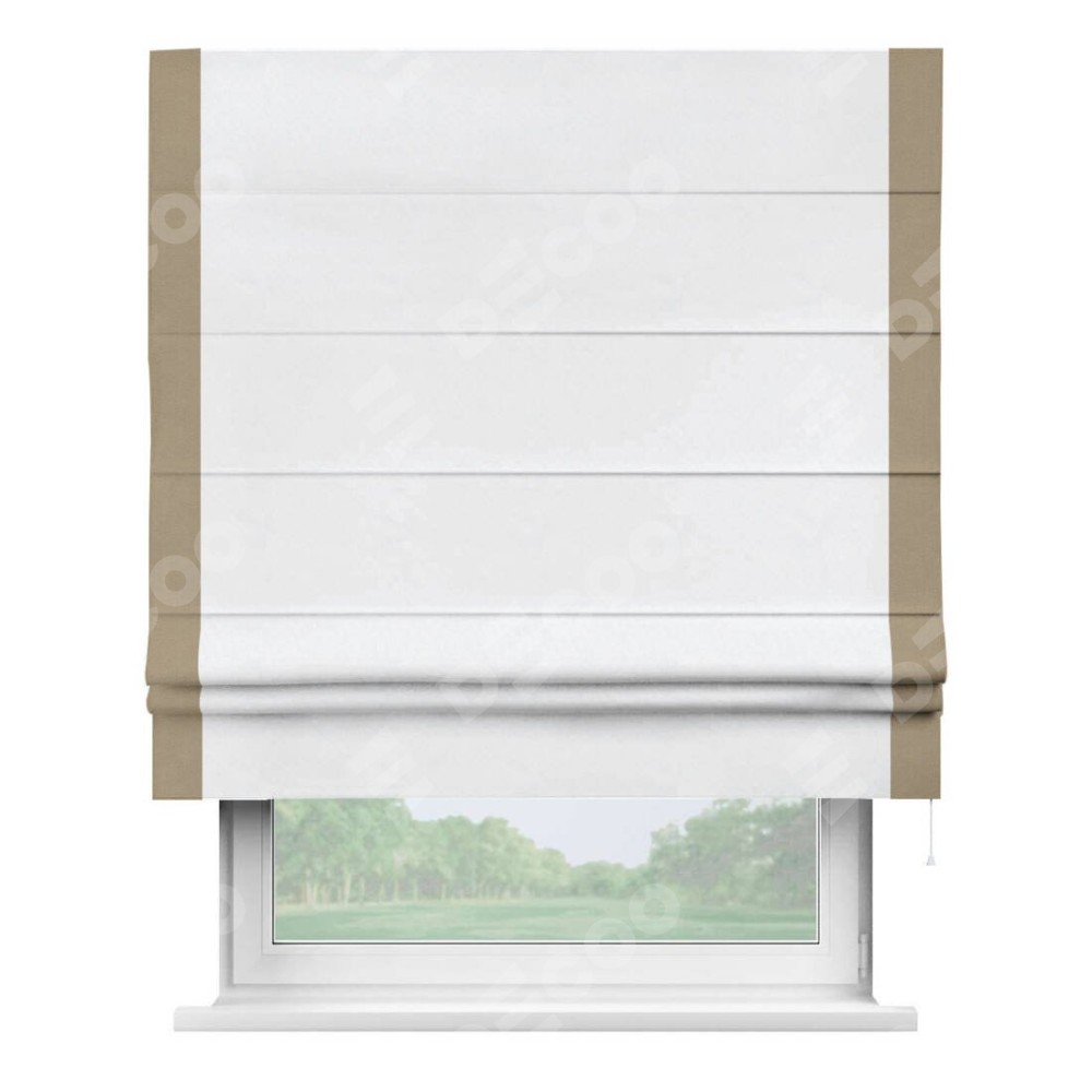Римская штора «Кортин» для проёма, вельвет белоснежный с кантом Стрим Дуо