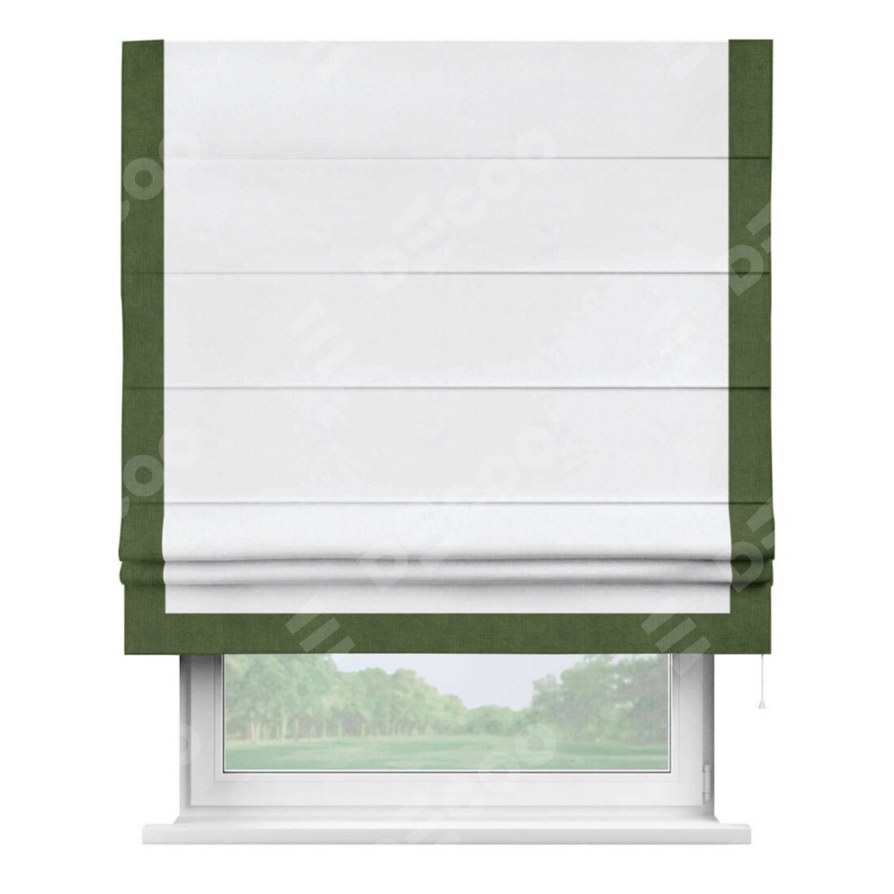 Римская штора с отделкой кантом «Виктория», пошита из ткани вельвет белоснежный, артикул: 92698. представляет собой элегантное решение для оконного оформления. Кант по бокам и снизу шторы добавляет изысканности и аккуратности внешнему виду, подчеркивая линии и форму шторы. Этот элемент декора не только украшает, но и выполняет практическую функцию, защищая края ткани от износа. Кант может быть выполнен в контрастном или гармонирующем цвете, что позволяет добиться различных стилевых эффектов и легко вписать штору в интерьер комнаты.