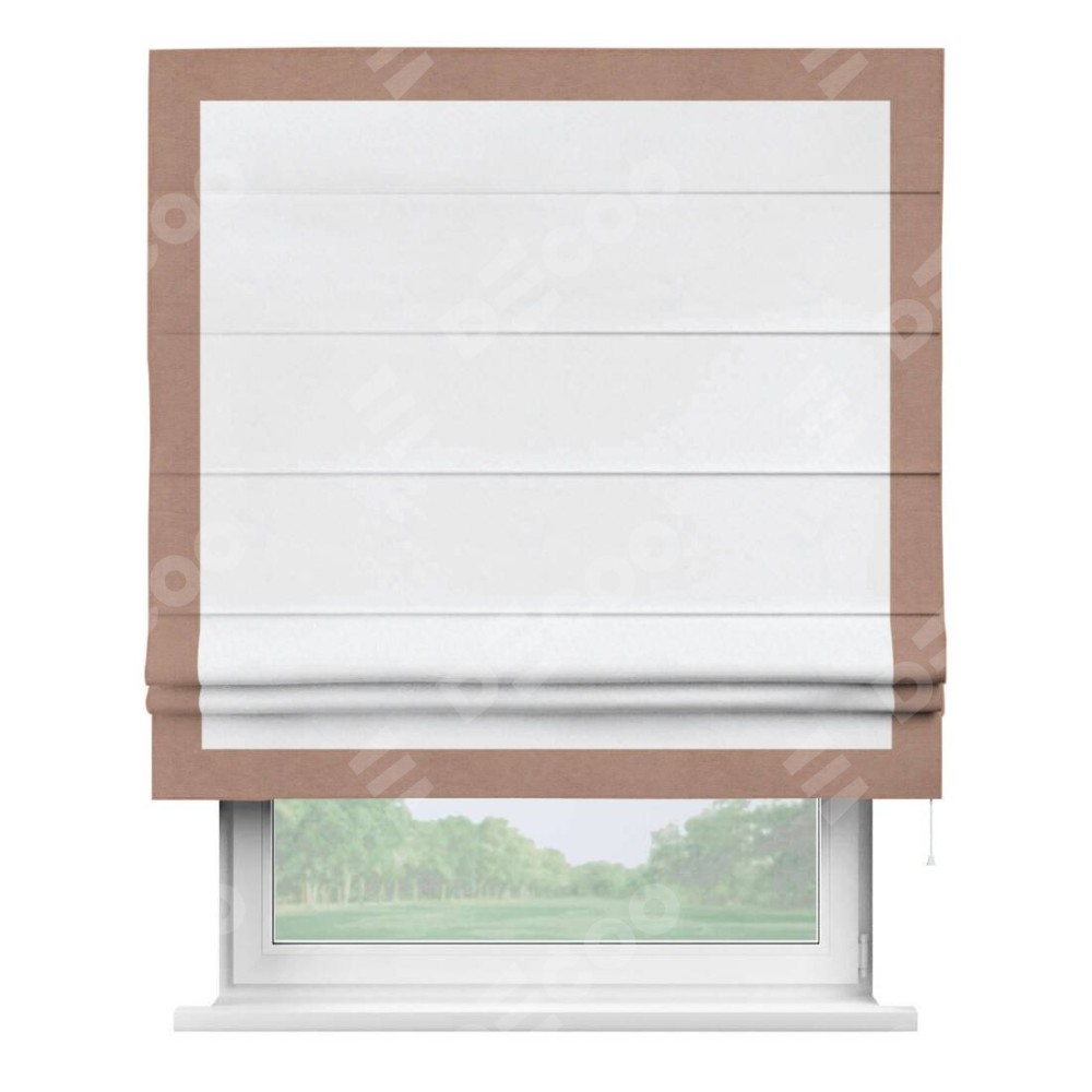 Римская штора «Кортин» для проёма, вельвет белоснежный с кантом Чесс