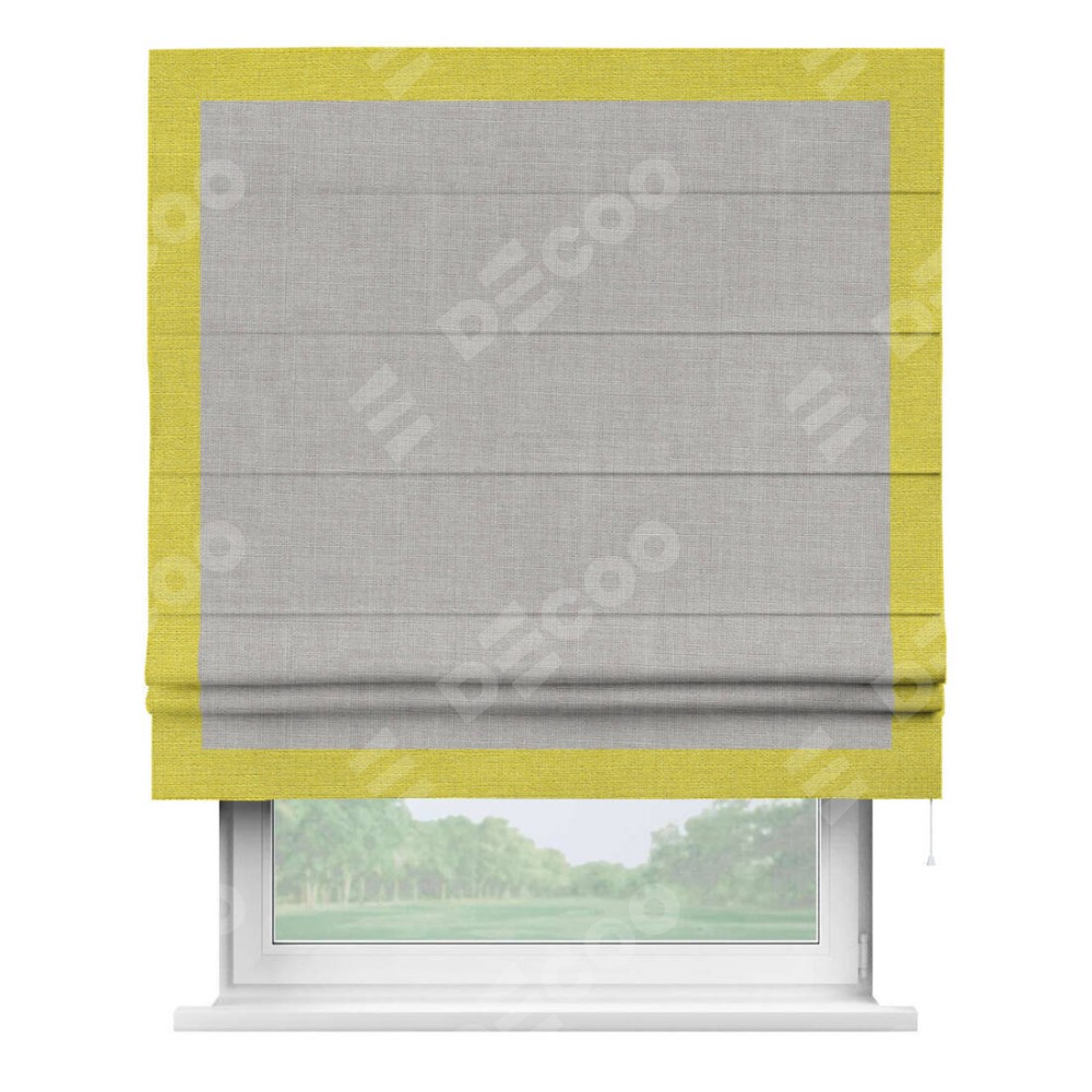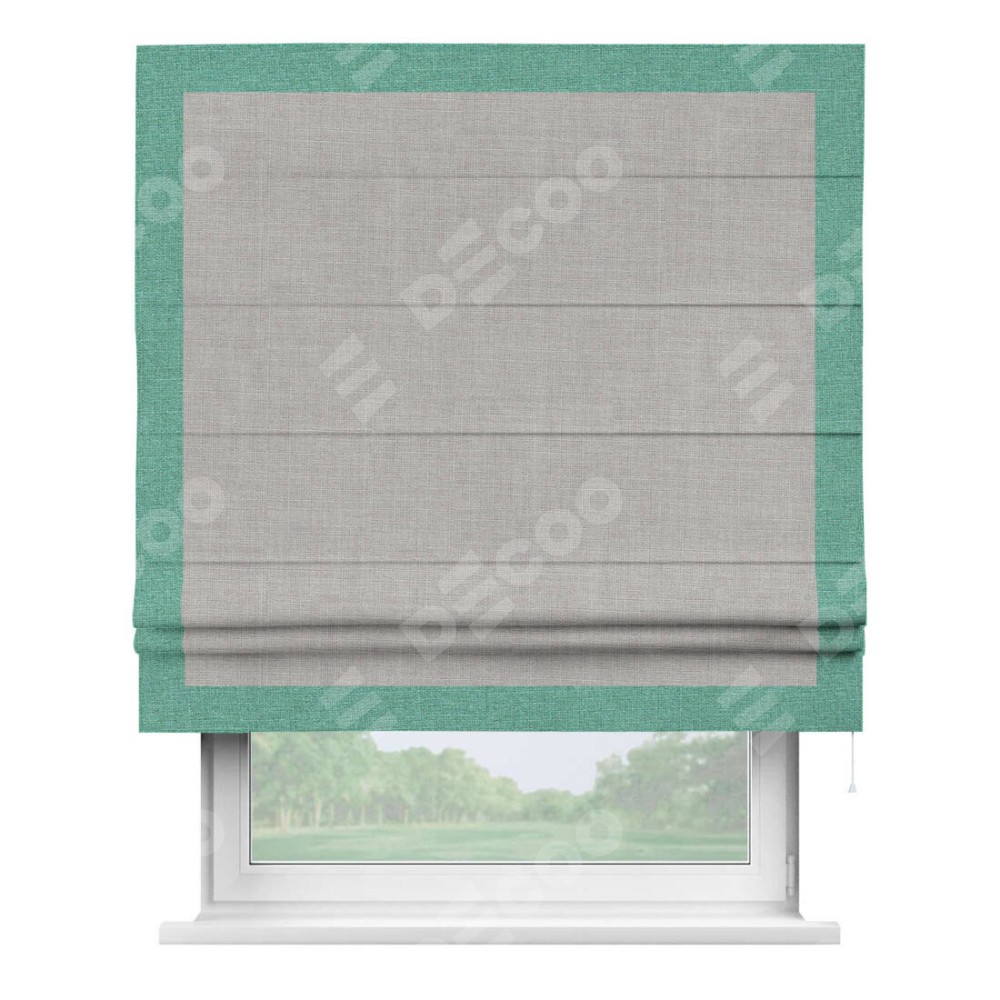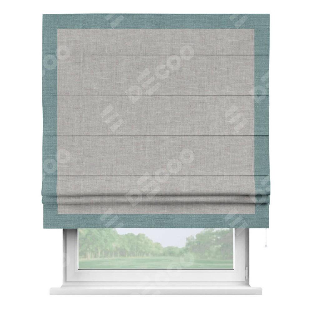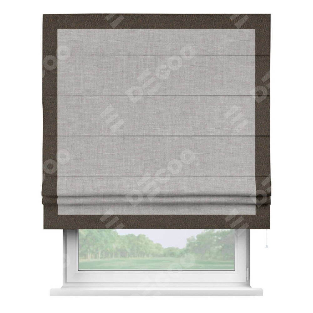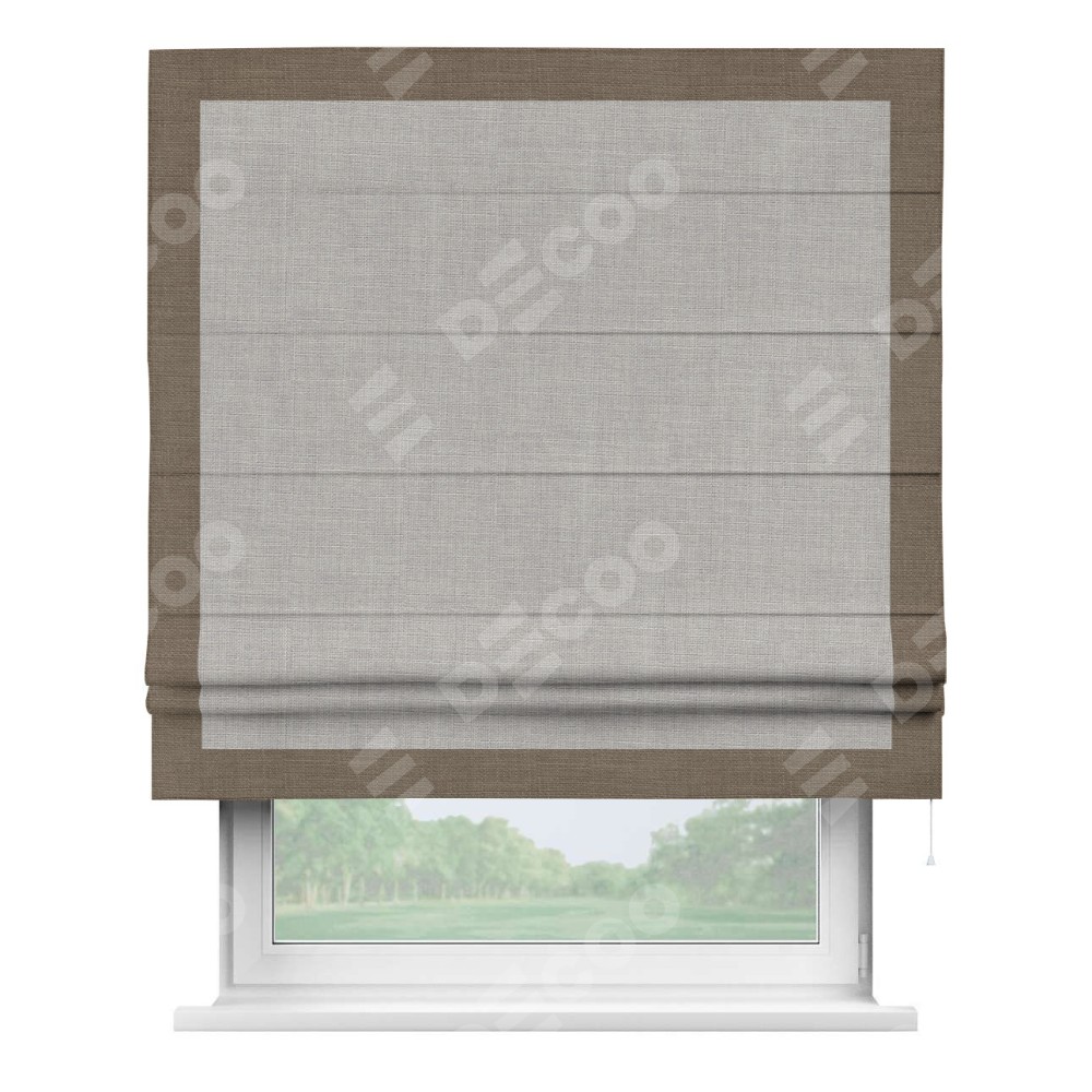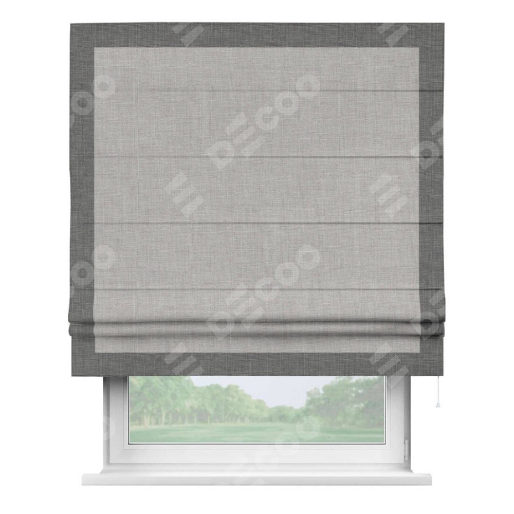 Римская штора «Кортин» для проёма, лён серый, с кантом Чесс