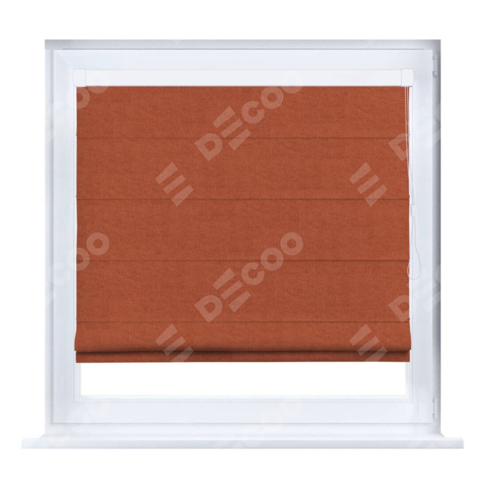 Римская штора производителя «Cortin», устанавливается на створку окна, пошита из ткани канвас терракотовый, артикул v-107. Штора шьётся по индивидуальным размерам, для данного типа римской шторы возможная ширина от 35 до 150 см., высота до 250 см.