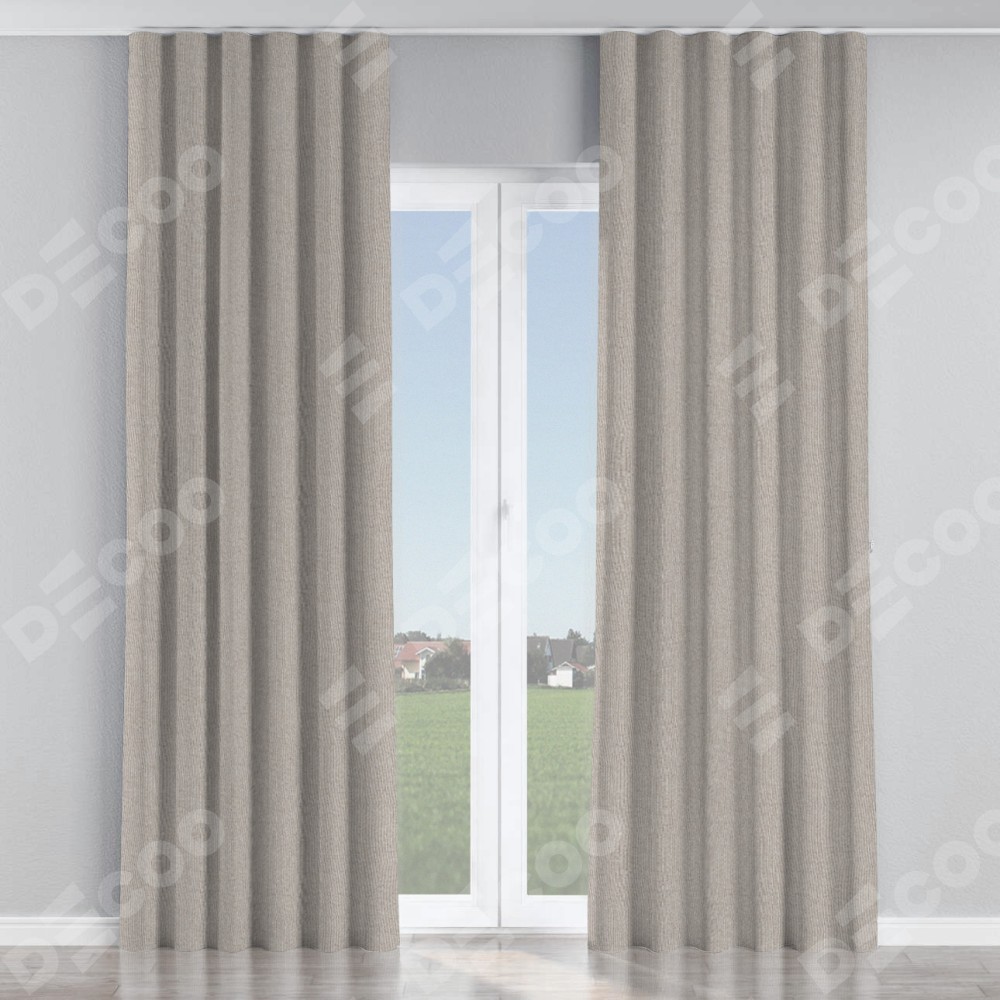 Комплект прямых штор, от производителя «Cortin», пошиты из ткани лён димаут серо-бежевый, артикул ткани 17. С изнаночной стороны в верхней части штор пристрачивается шторная лента с декоративными складками «Волна». Для создания элегантных складок рекомендуемый коэффициент 1:2 (на 100 см. ширины проёма 200 см. ширины ткани). Важно! Ширина штор указана без учёта коэффициента сборки!