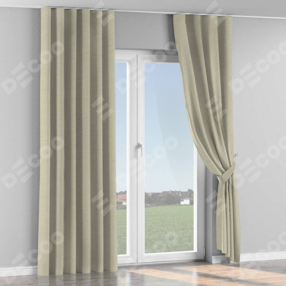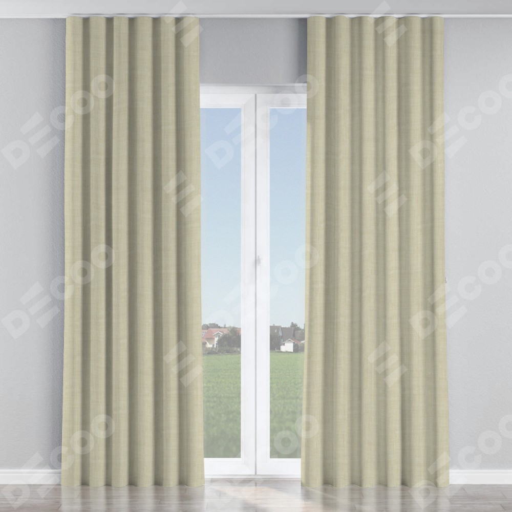 Комплект прямых штор, от производителя «Cortin», пошиты из ткани лён топлёное молоко, артикул ткани 104484. С изнаночной стороны в верхней части штор пристрачивается шторная лента с декоративными складками «Волна». Для создания элегантных складок рекомендуемый коэффициент 1:2 (на 100 см. ширины проёма 200 см. ширины ткани). Важно! Ширина штор указана без учёта коэффициента сборки!