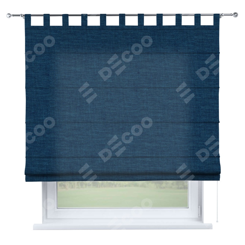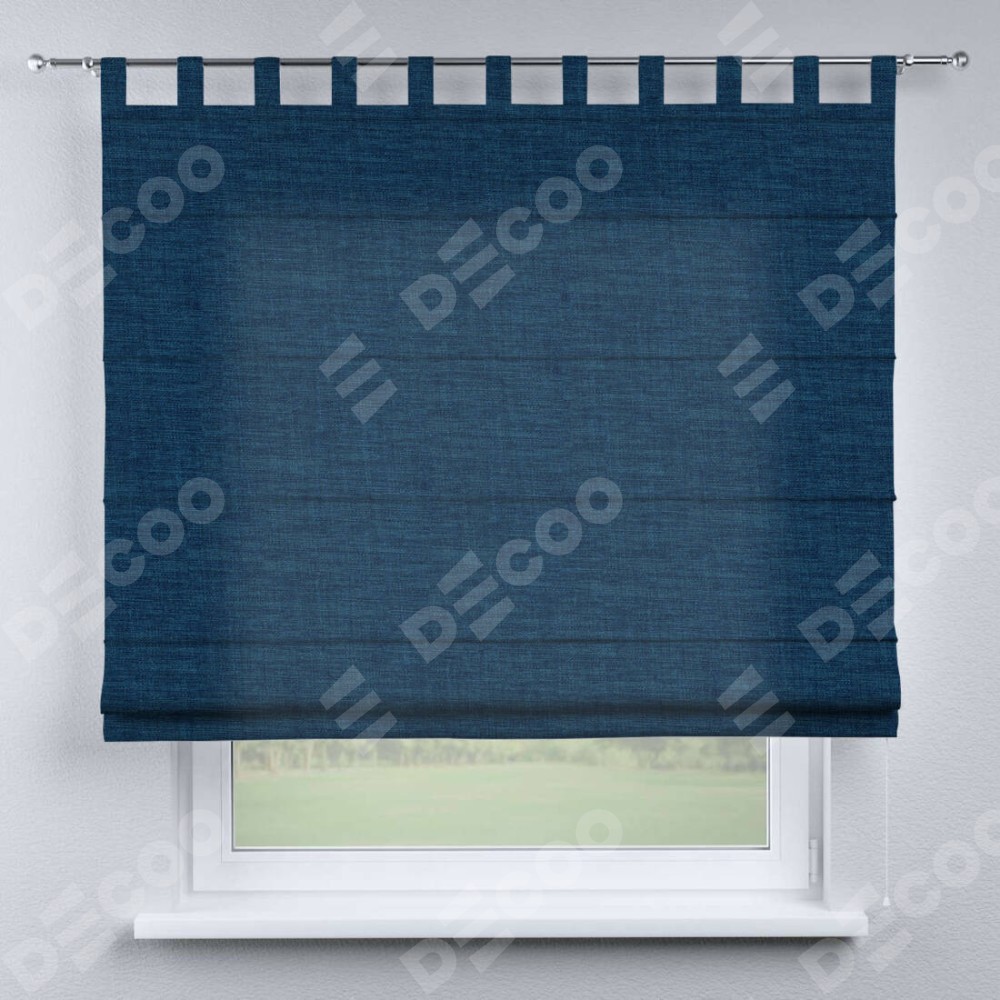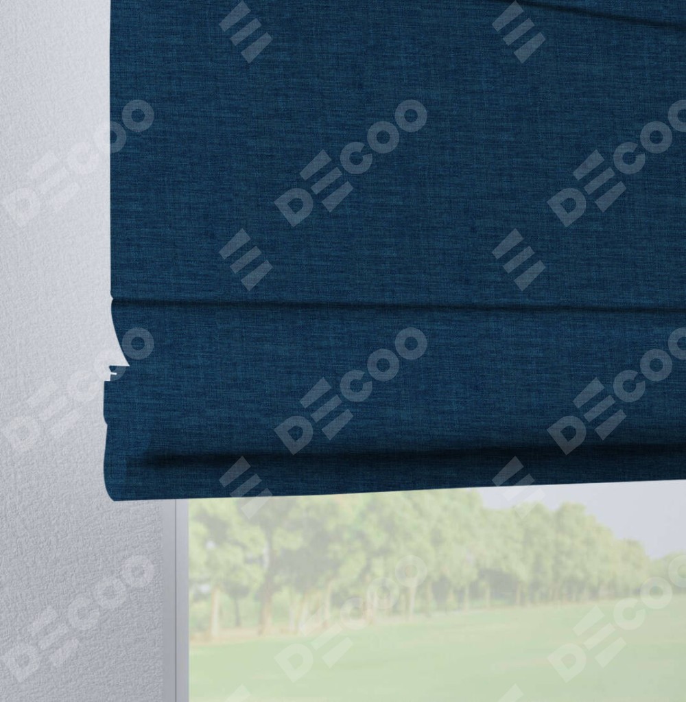 Римская штора «Кортин», лён синий, на петлях