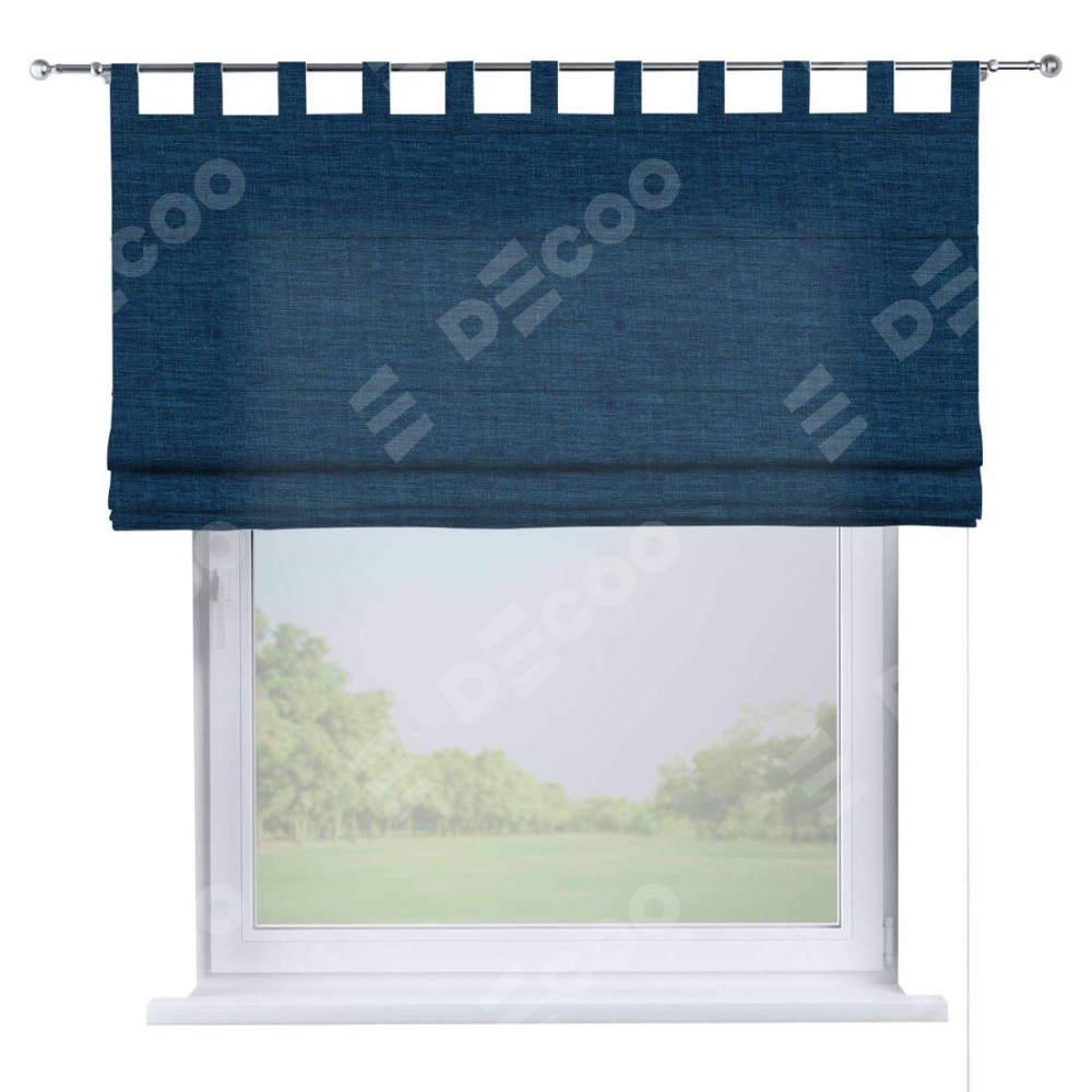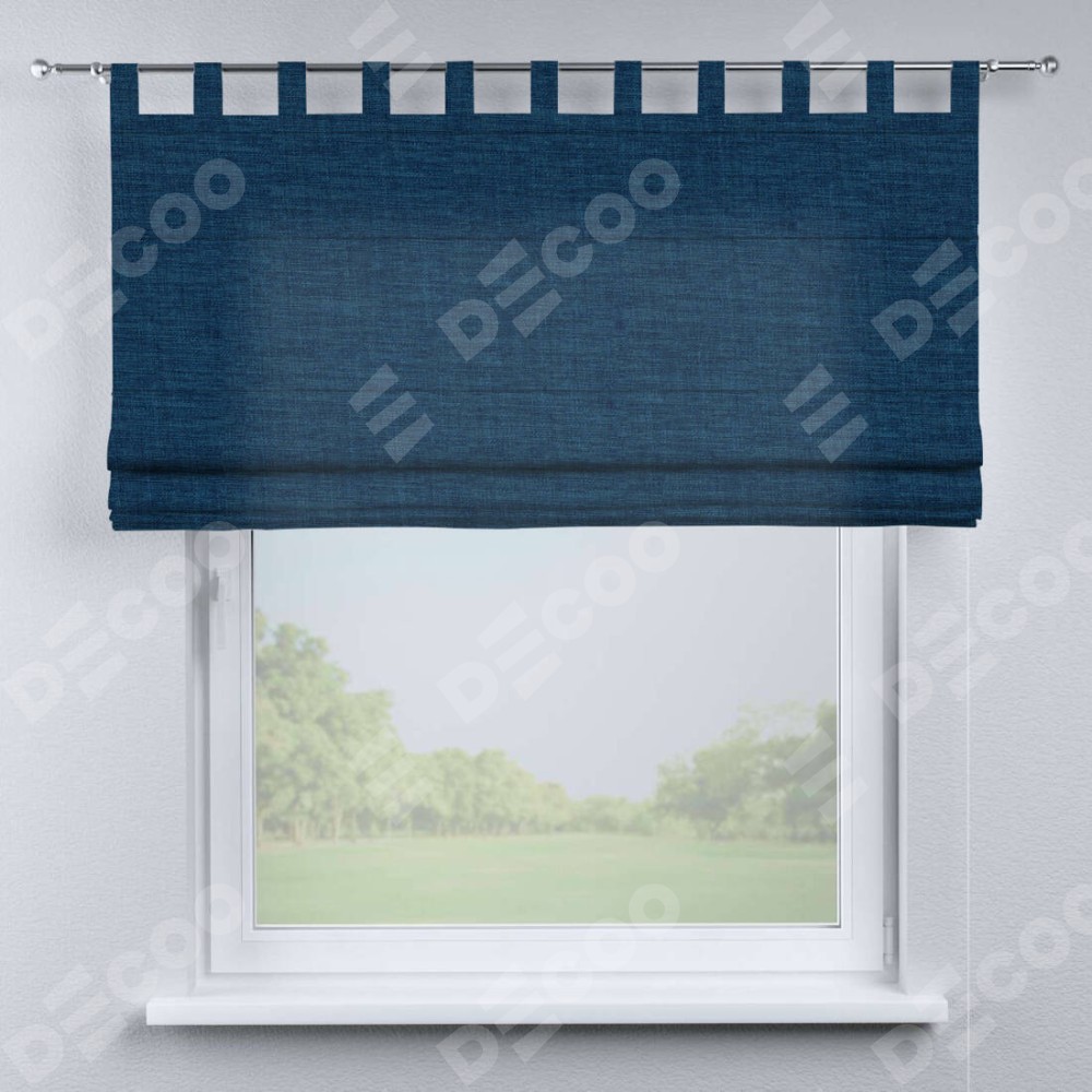 Римская штора производителя «Cortin», используется для проёма, пошита из ткани лён синий, артикул ткани 104496. Данная модель пошита на петлях, комплектуется на выбор круглым карнизом и подходит для монтажа на стену. Римская штора на петлях имеет простую систему регулировки высоты, отличительным преимуществом данной модели является простой способ монтажа. Достаточно повесить ее на трубу и штора готова!