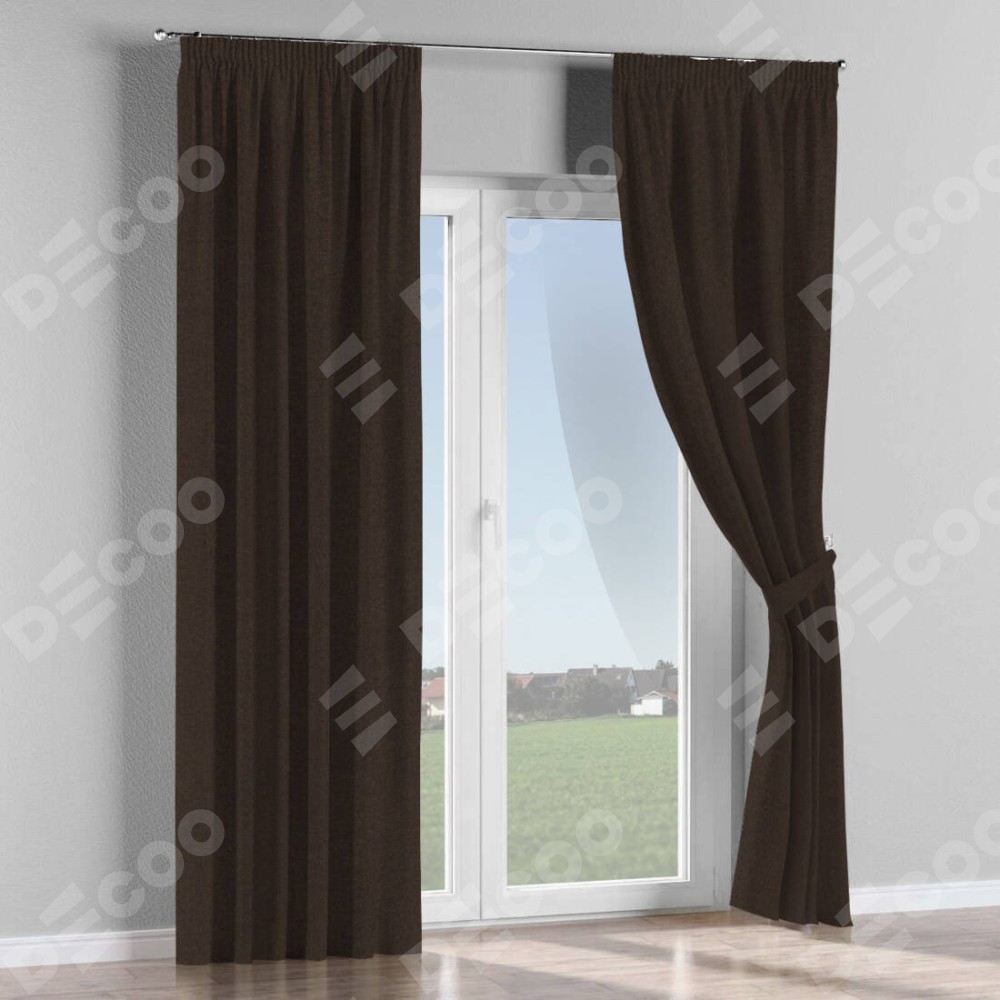 Комплект штор лён тёмно-коричневый, на тесьме «Карандаш»
