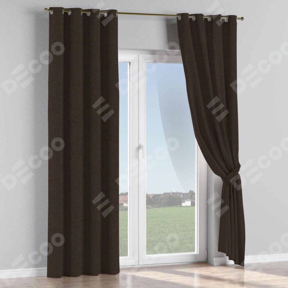 Комплект штор лён тёмно-коричневый, на люверсах