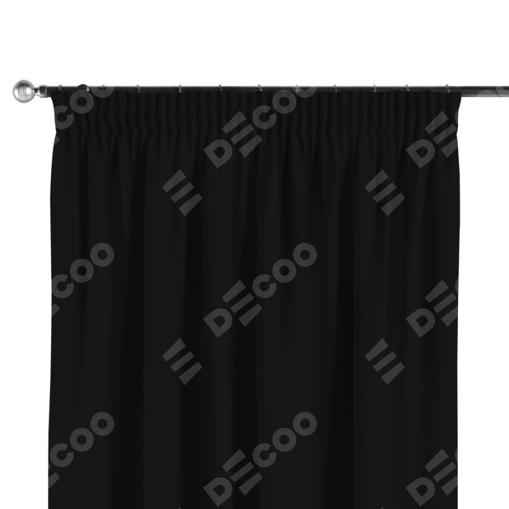 Комплект прямых штор, от производителя «Cortin», пошиты из ткани блэкаут однотонный черный, артикул ткани 37. С изнаночной стороны в верхней части штор пристрачивается шторная лента с декоративными складками «Карандаш». Для создания элегантных складок прямые шторы шьются по стандарту с коэффициентом 1:2 (на 100 см. ширины проёма 200 см. ширины ткани).