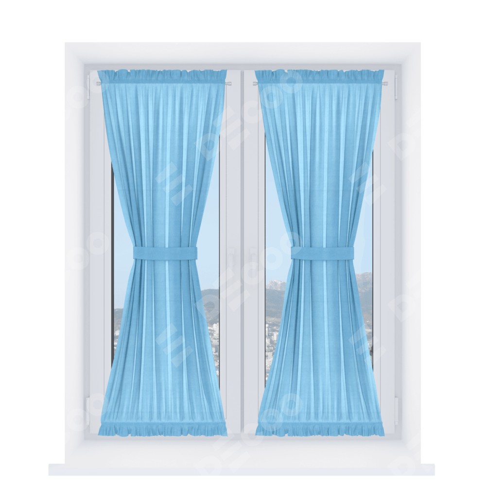 Штора «Песочные часы» производителя «Cortin», используется для створок окон и дверей, пошита из ткани вельвет голубой, артикул ткани 85544.