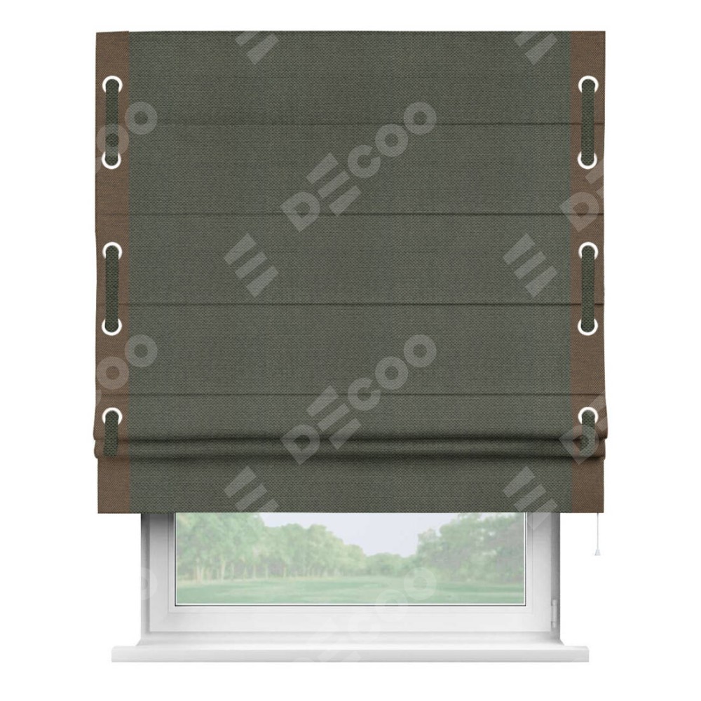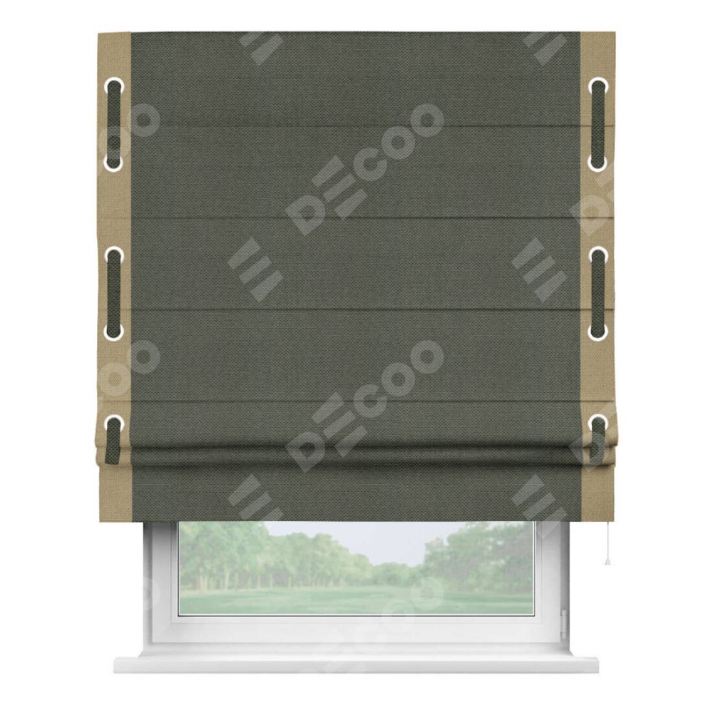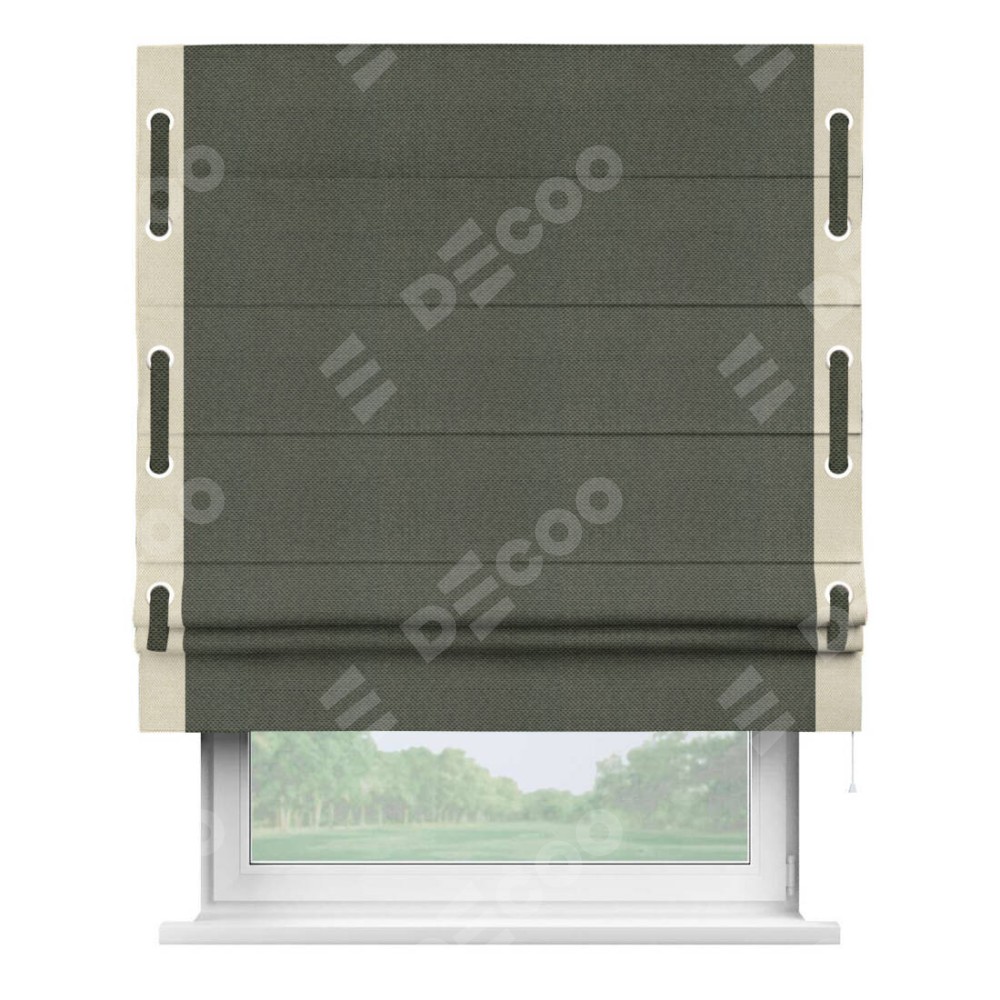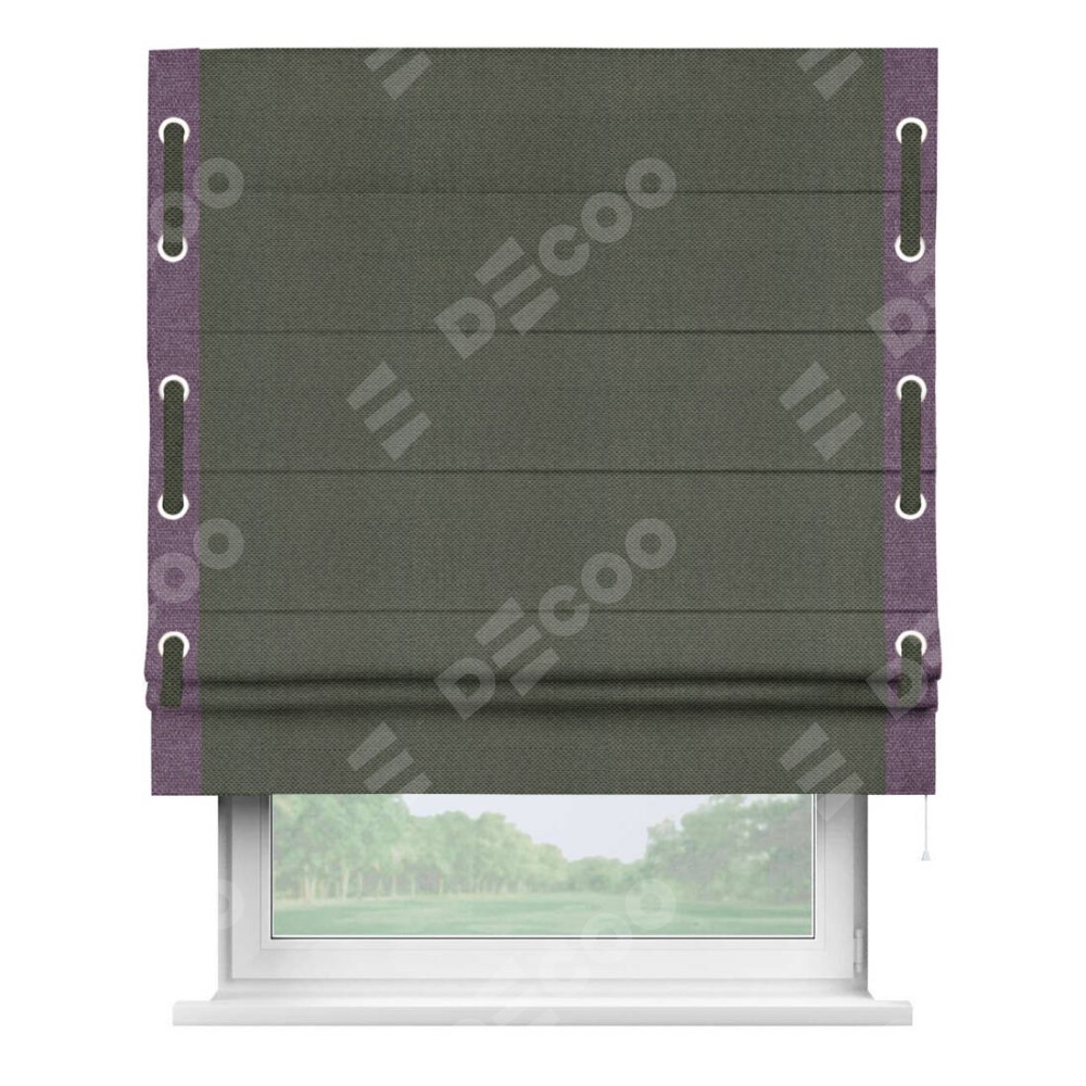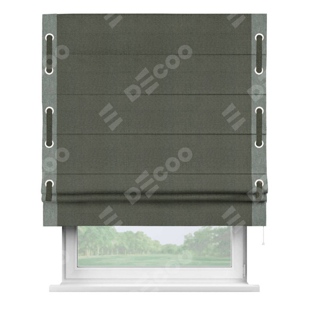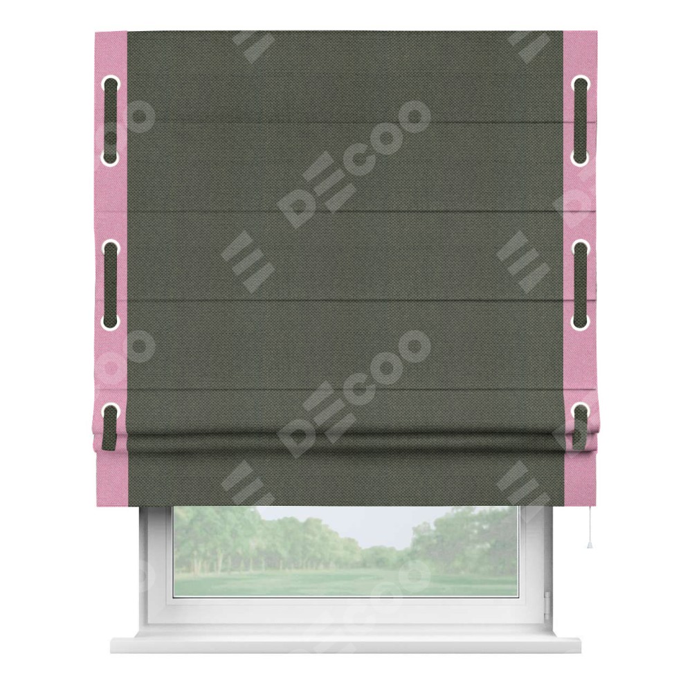 Римская штора «Кортин» с кантом Стрим Дуо (люверсы с пояском), для проема, ткань лён димаут, графит