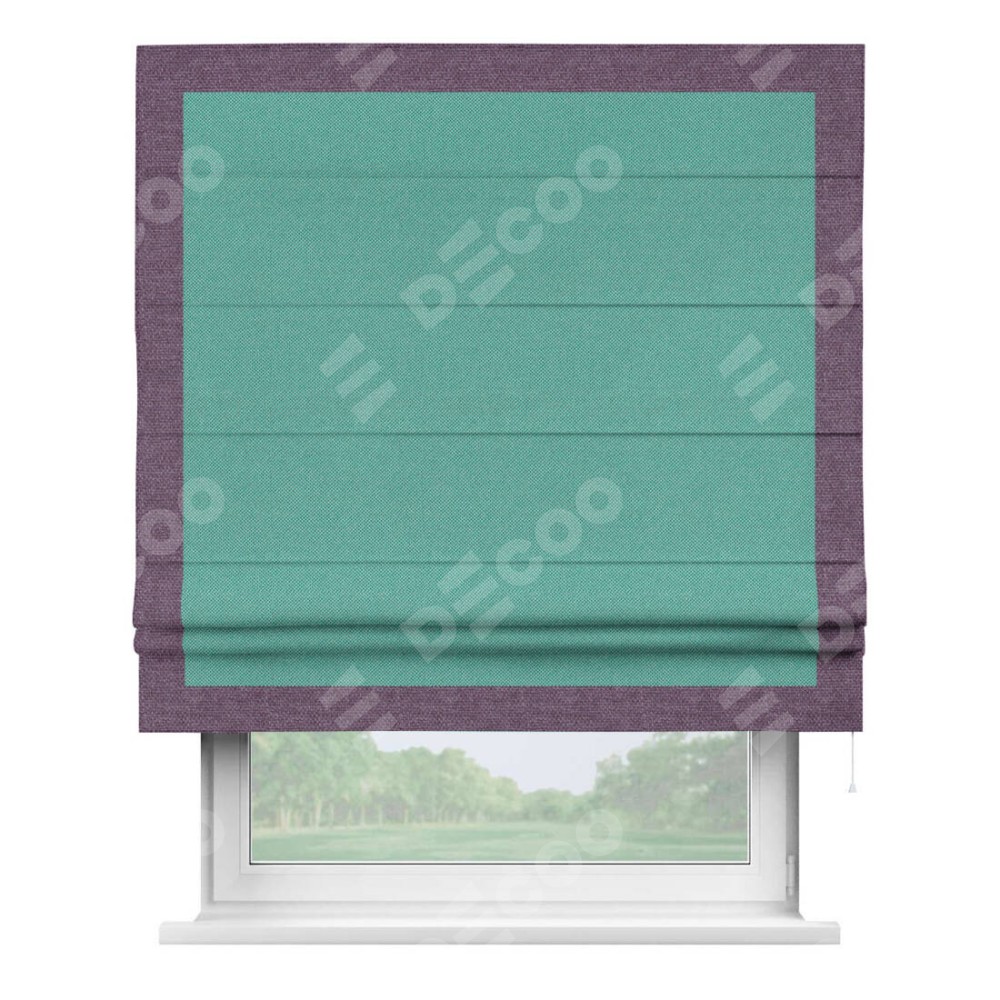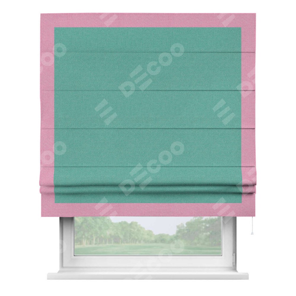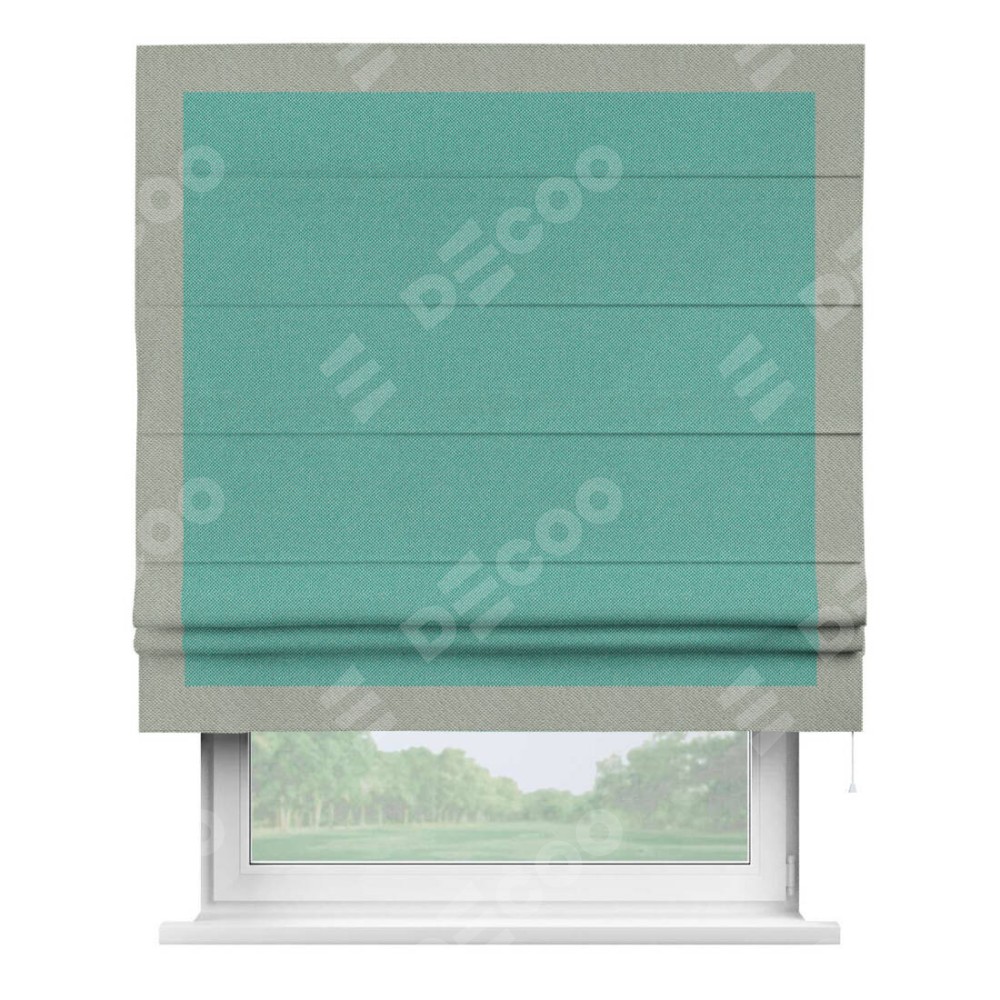 Римская штора «Кортин» с кантом Чесс, для проема, ткань лён димаут, бирюзовый