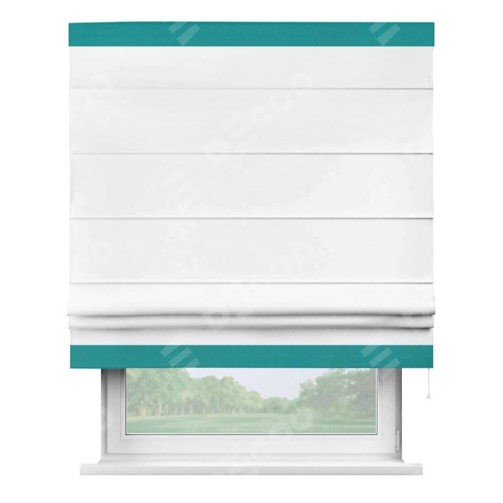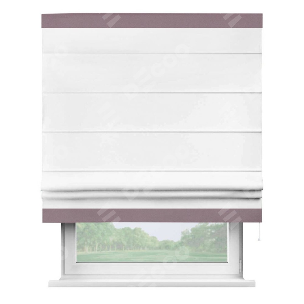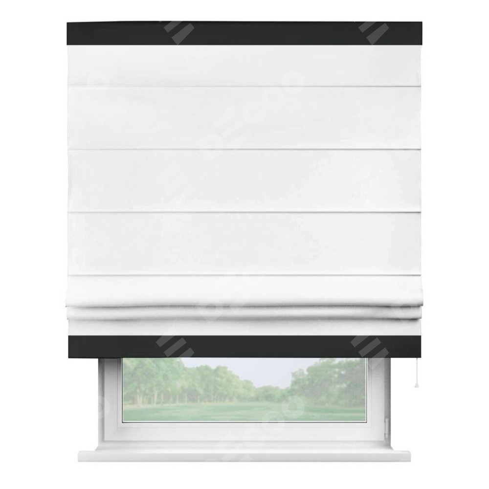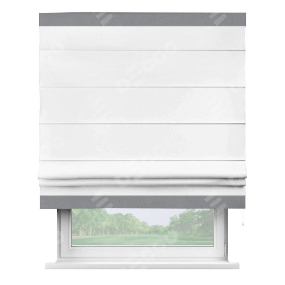 Римская штора «Кортин» для проёма, вайтаут однотонная белая с кантом Горизонт
