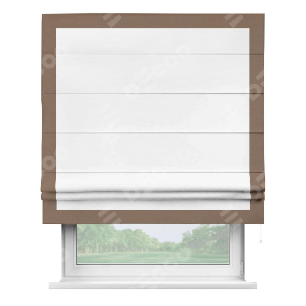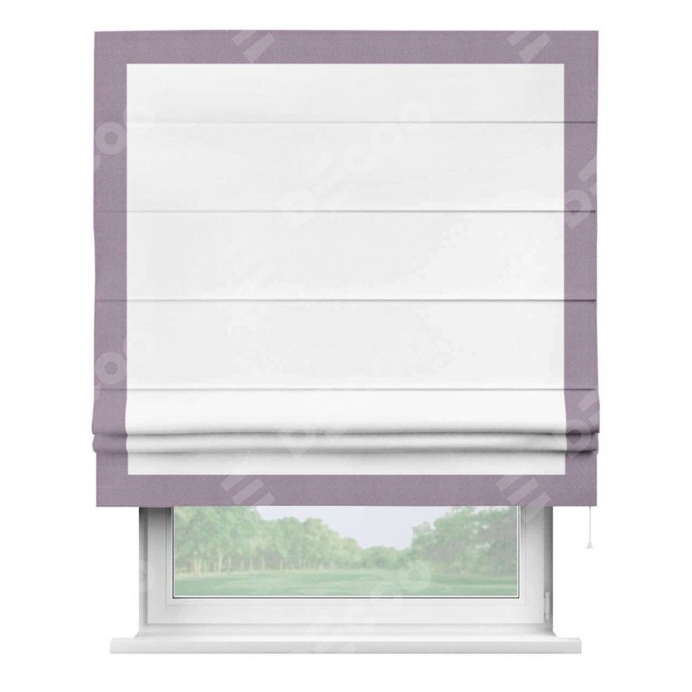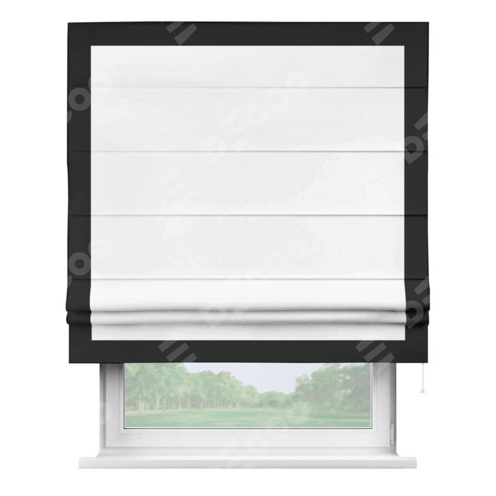 Римская штора «Кортин» для проёма, вайтаут однотонная белая с кантом Чесс