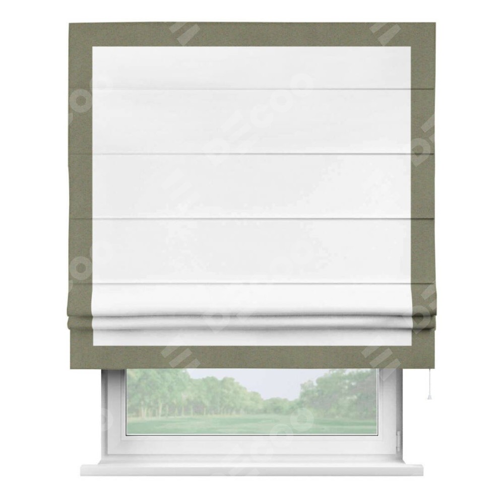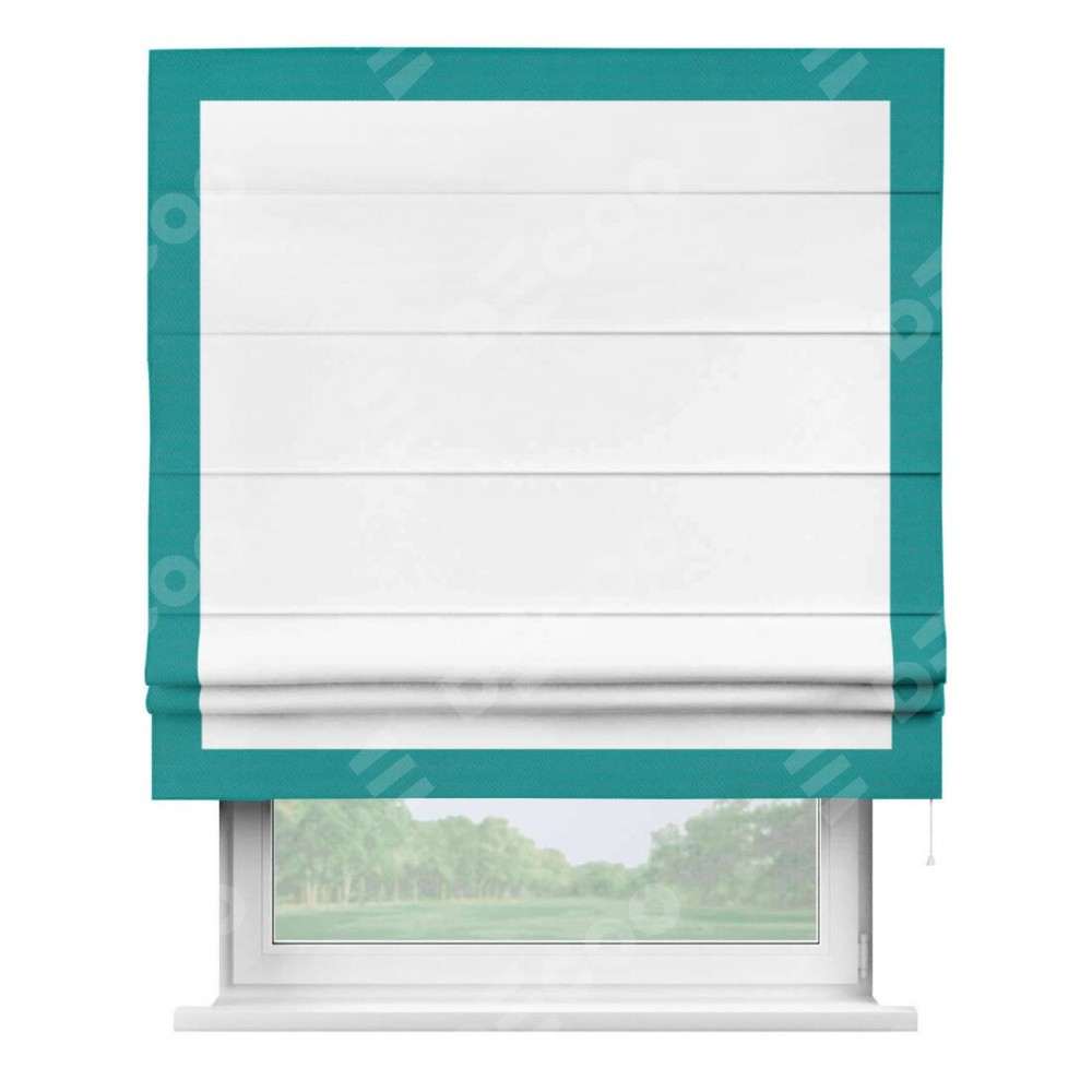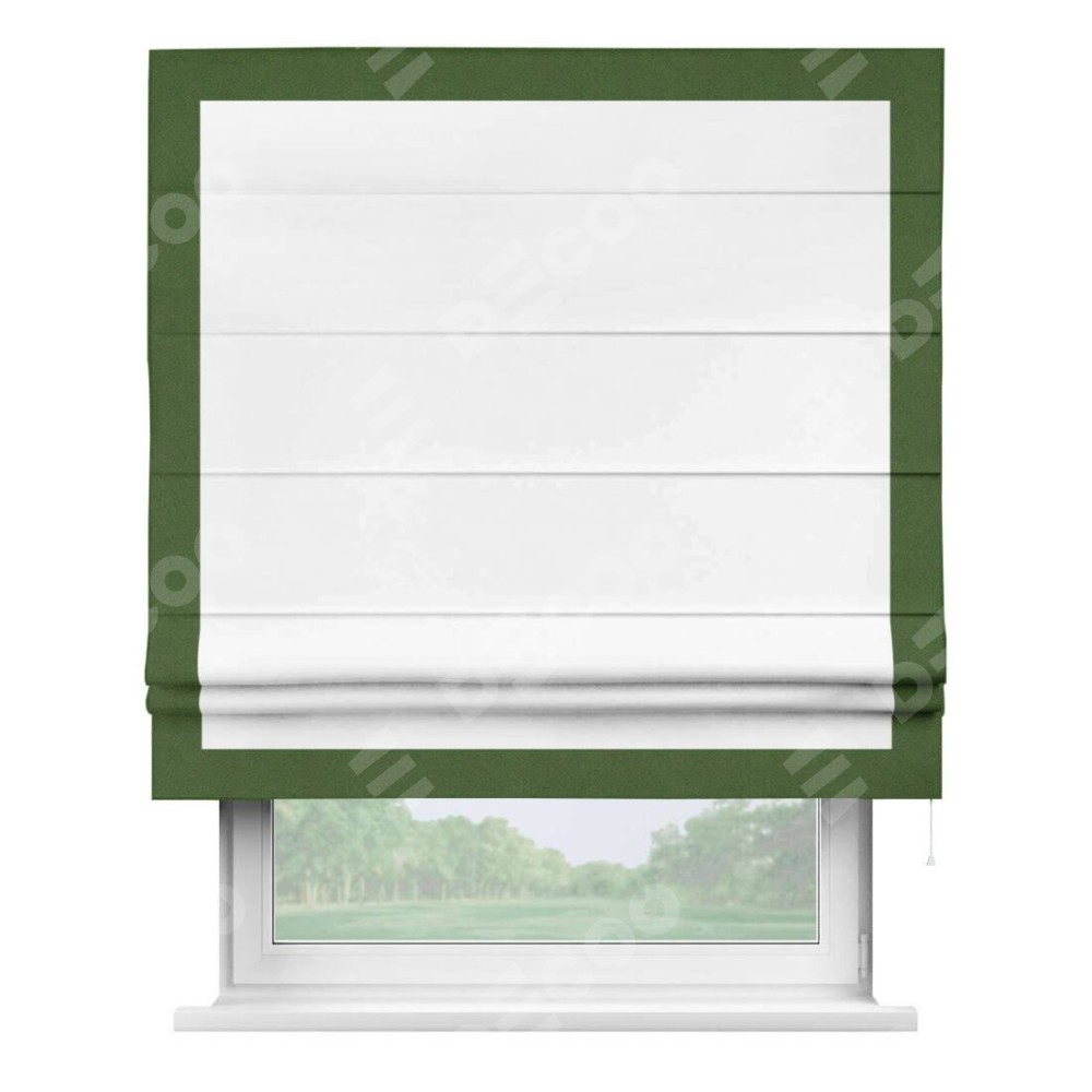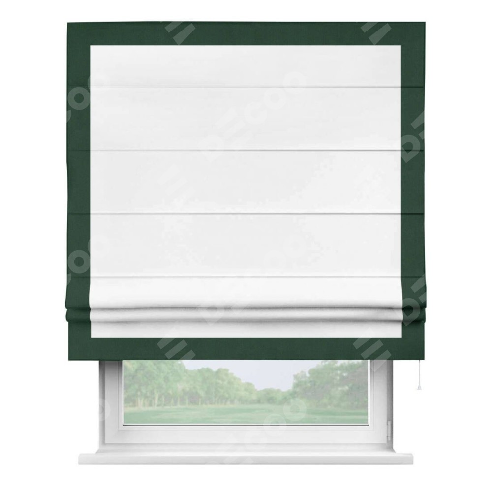 Римская штора «Кортин» для проёма, вайтаут однотонная белая с кантом Чесс