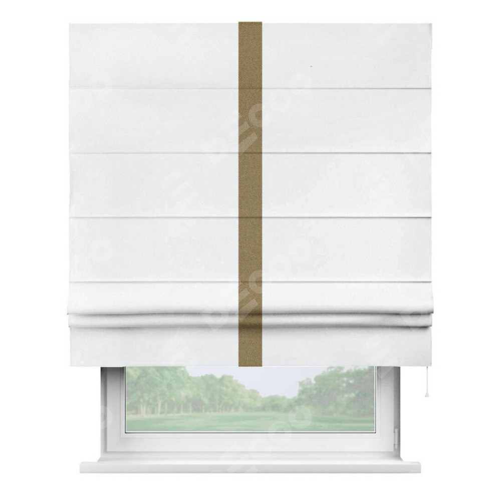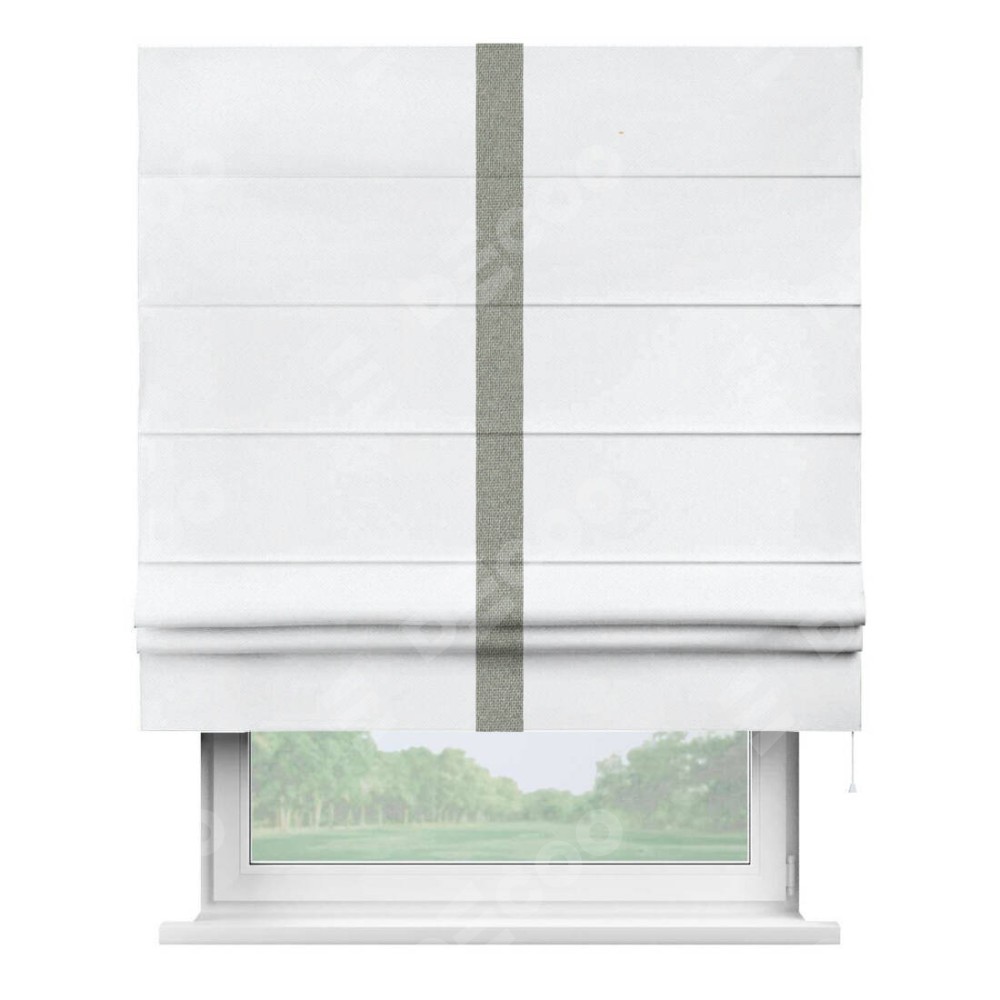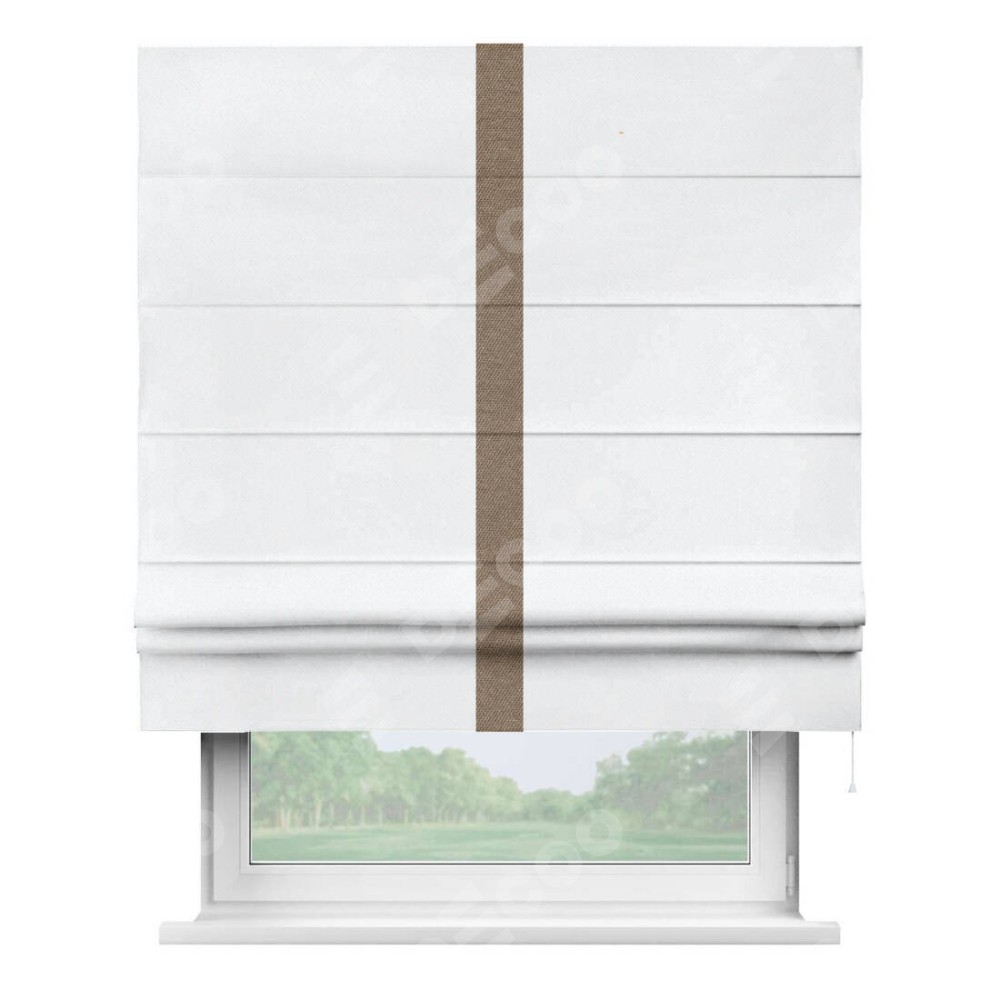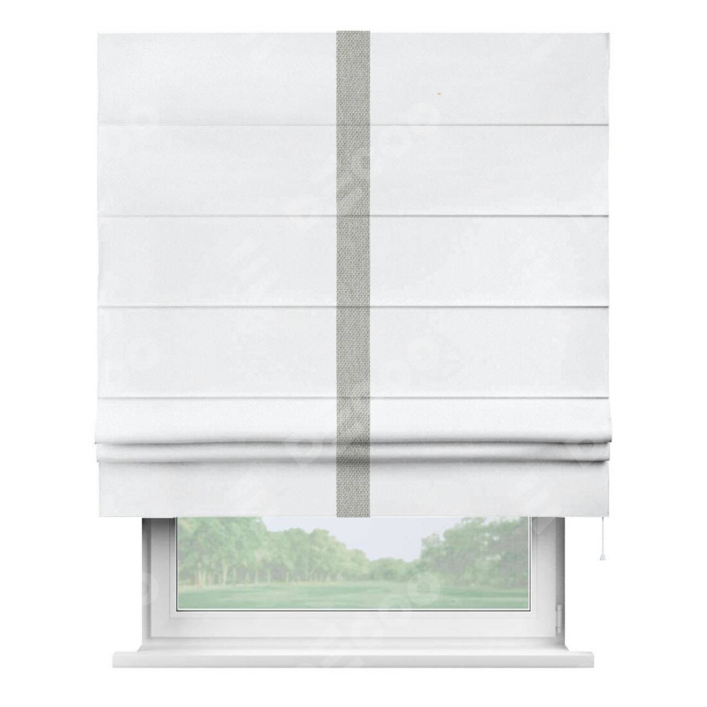 Римская штора «Кортин» для проема, лён димаут белый с кантом Хайвэй