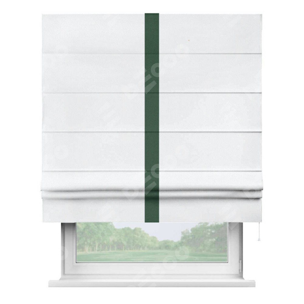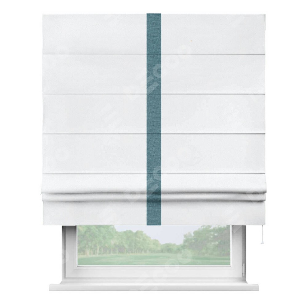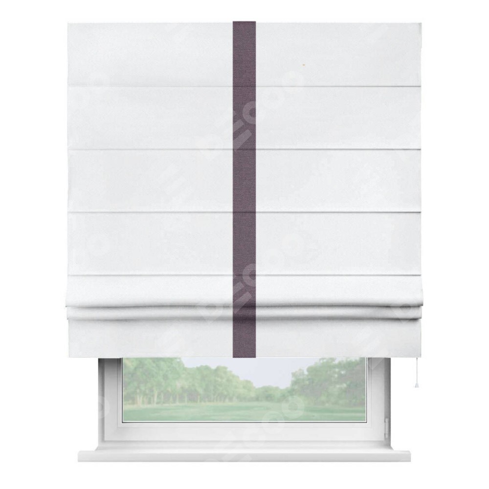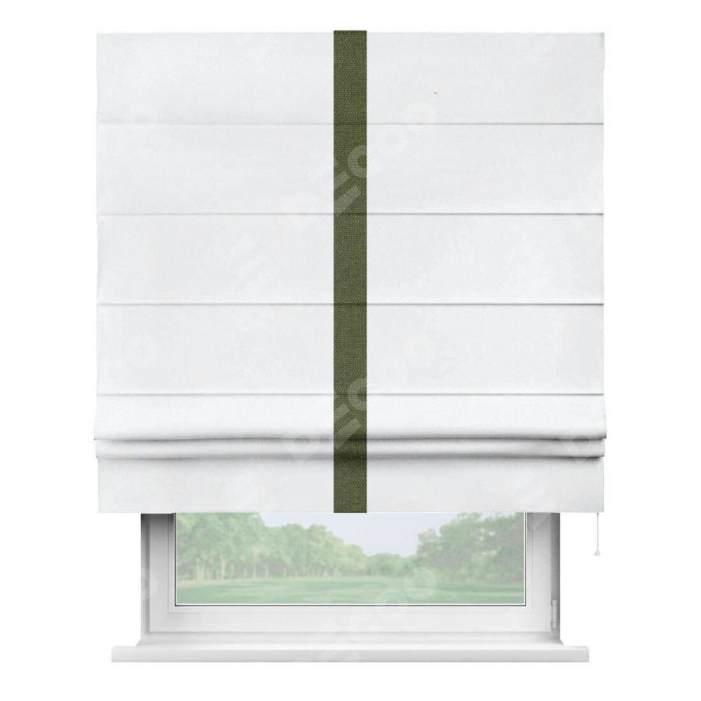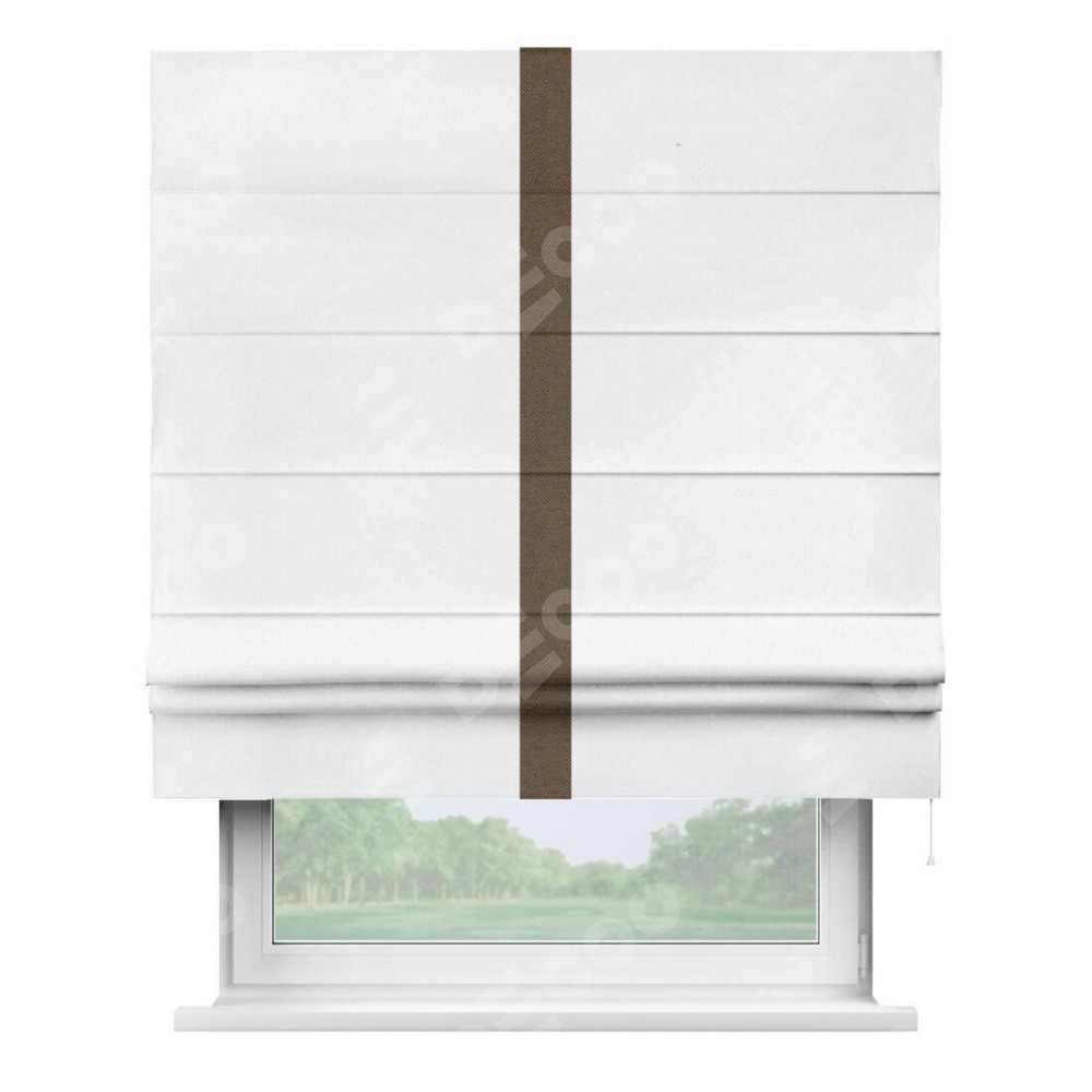 Римская штора «Кортин» для проема, лён димаут белый с кантом Хайвэй